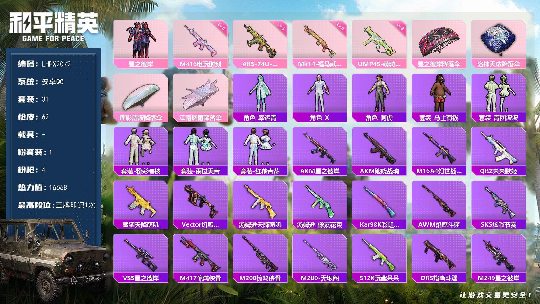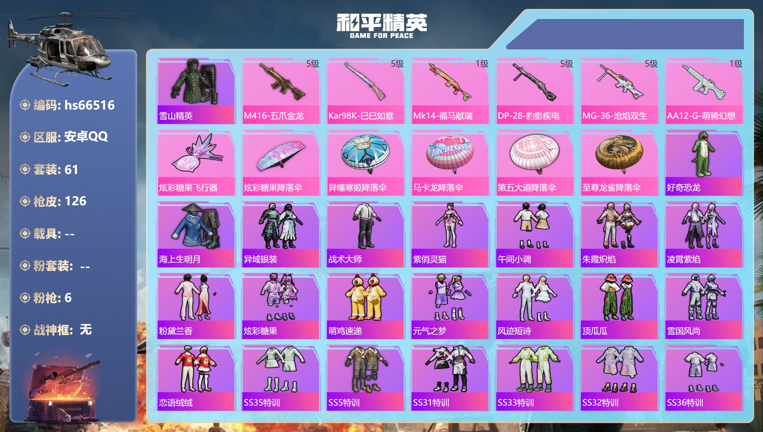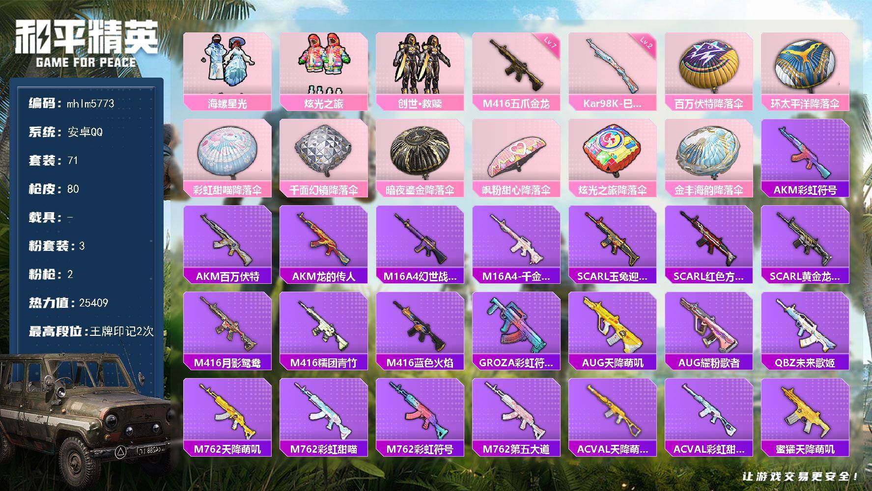安卓 手Q-2粉装-6特效枪-0载具-1粉色飞行器-28369热力值-7王牌印