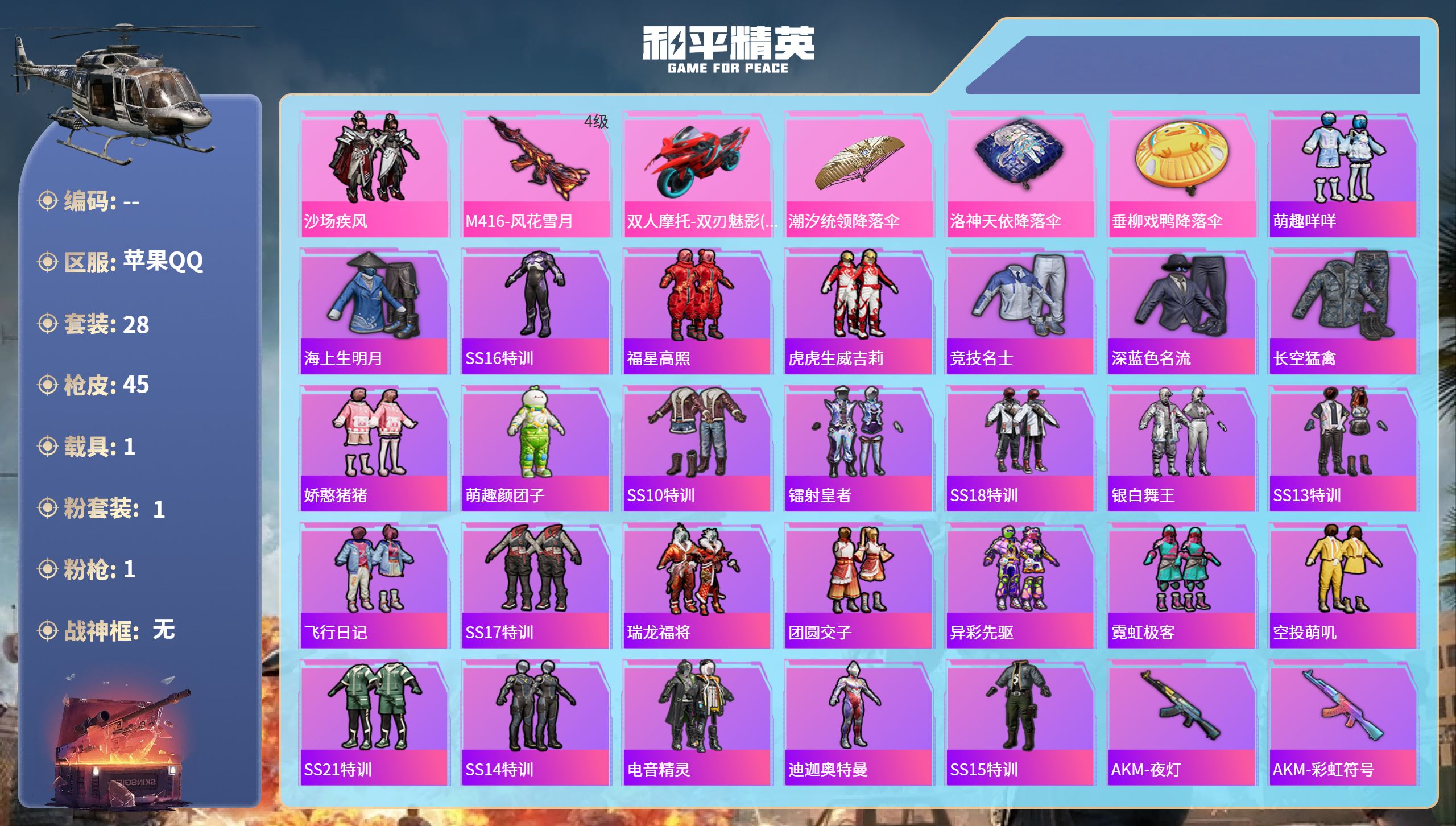 苹果手Q-4王牌印记-1粉装-1特效枪-1载具-15046热力值-