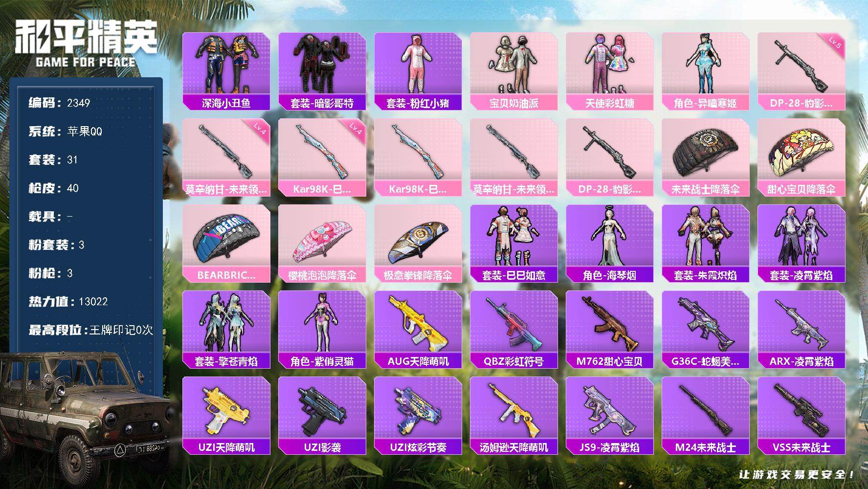 DD482【三体号吃鸡+王者+三角洲2粉装1特效枪1太阳Q29级】(可二次)安卓Q-2粉装1特效枪 81套装 108枪皮 28697热力值 8王牌印记 2卓越 1传奇 历史传奇王牌12星【2粉装】闪光银龙 莲影清波【1特效枪】AKM-绿萝繁花(5级)【2飞行器】萌物绒绒飞行器 太空嘟嘟飞行器 【3热门】英勇保护者 角色-孙斩天 日照林花 惊鸿侠骨 锦衣飞扬