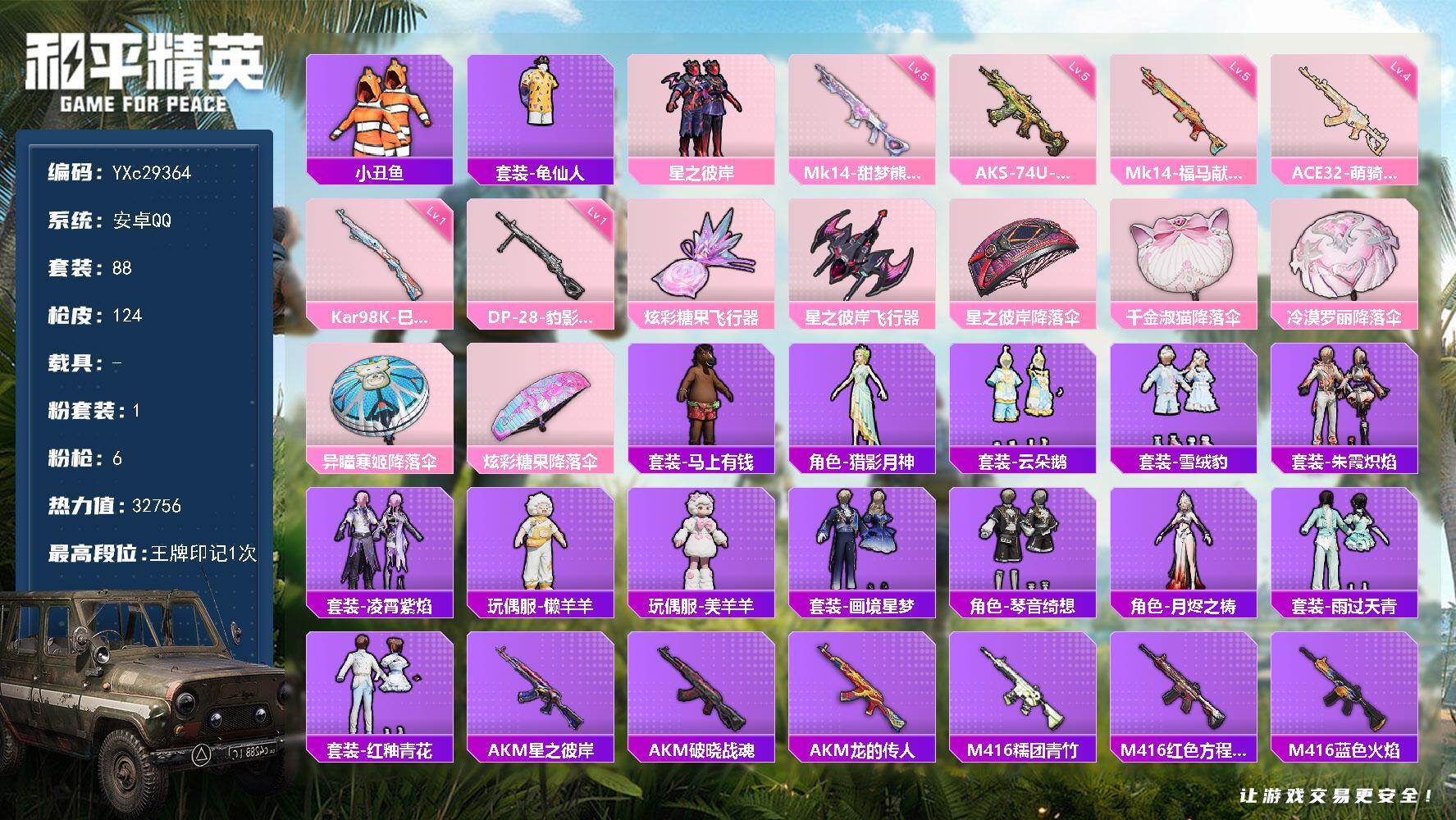 安卓 手Q-1粉装-3特效枪-1载具-2粉色飞行器-31183热力值-5王牌印