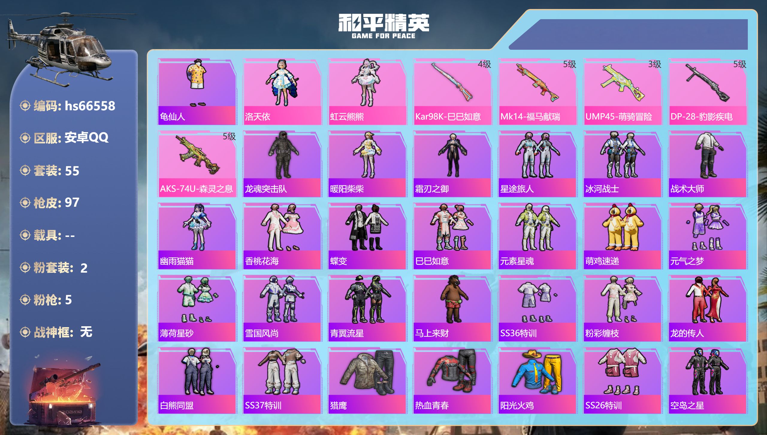 安卓手Q-0王牌印记-2粉装-5特效枪-23944热力值-55套
