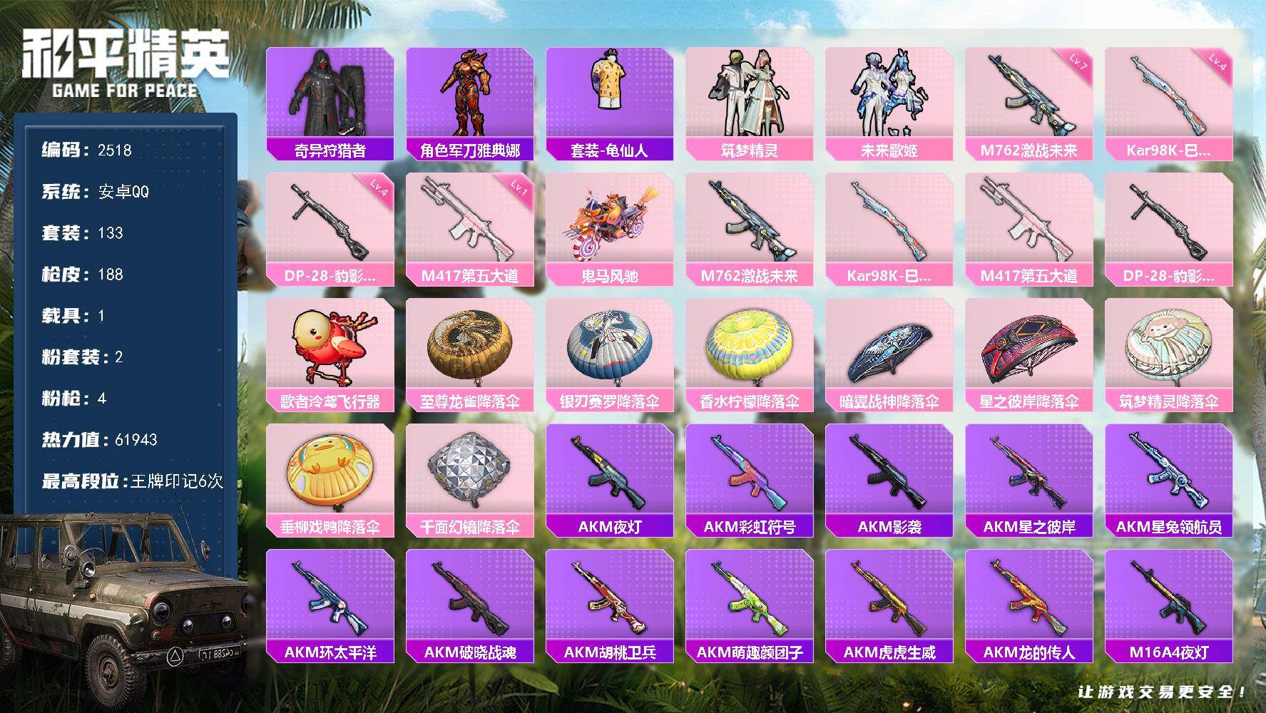 安卓 手Q-2粉装-4特效枪-0载具-0粉色飞行器-25200热力值-3王牌印