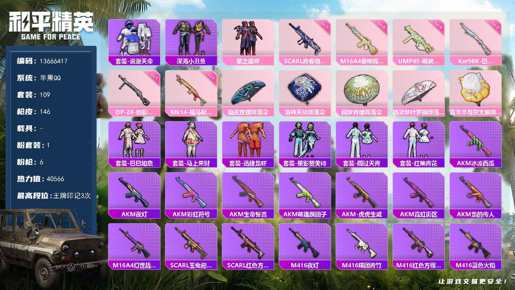 109套装/枪械6/装备131/战备94/王牌印记3/热力值40566/四级M