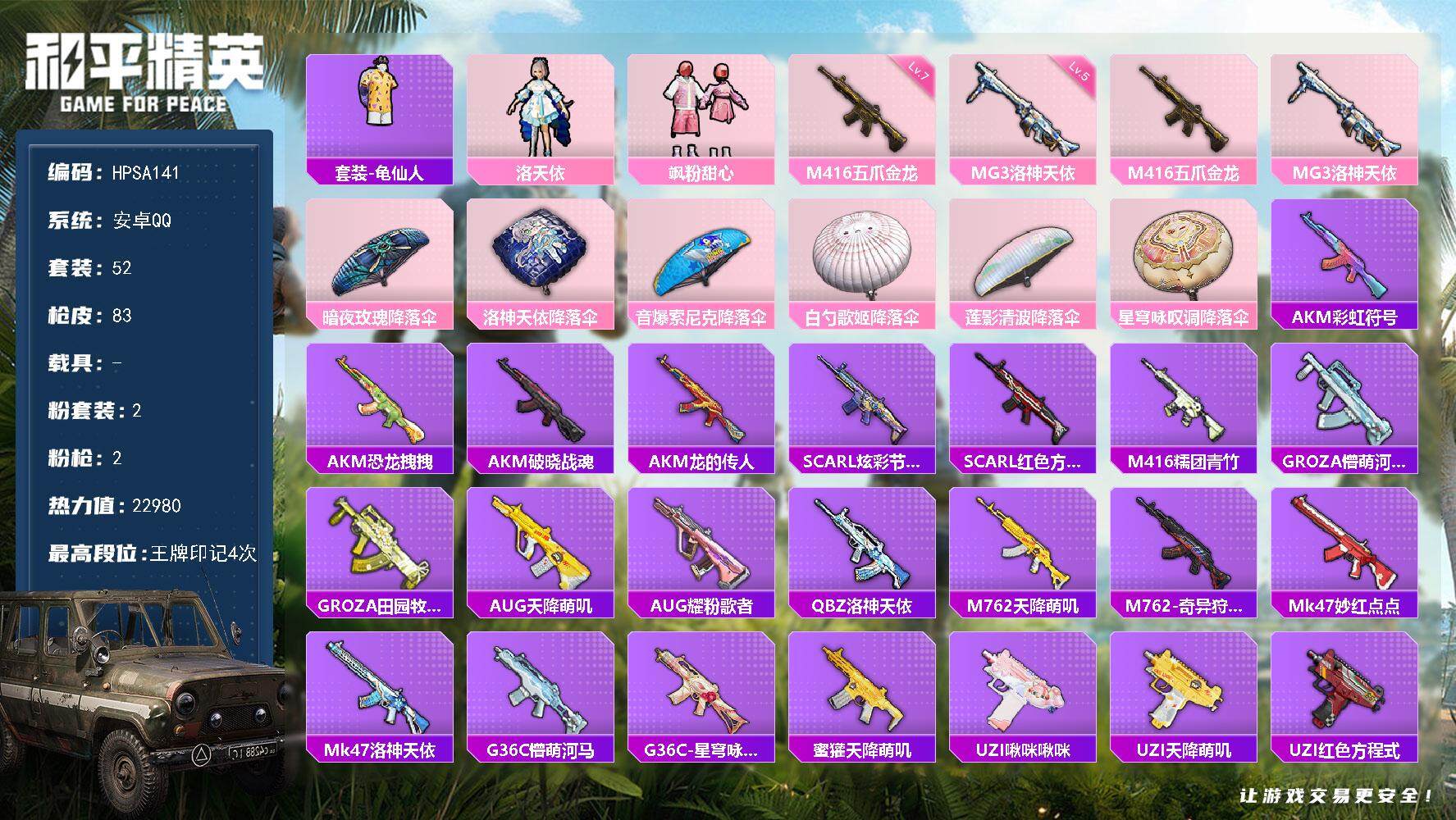 52套装/枪械2/装备77/战备63/王牌印记4/热力值22980/七级