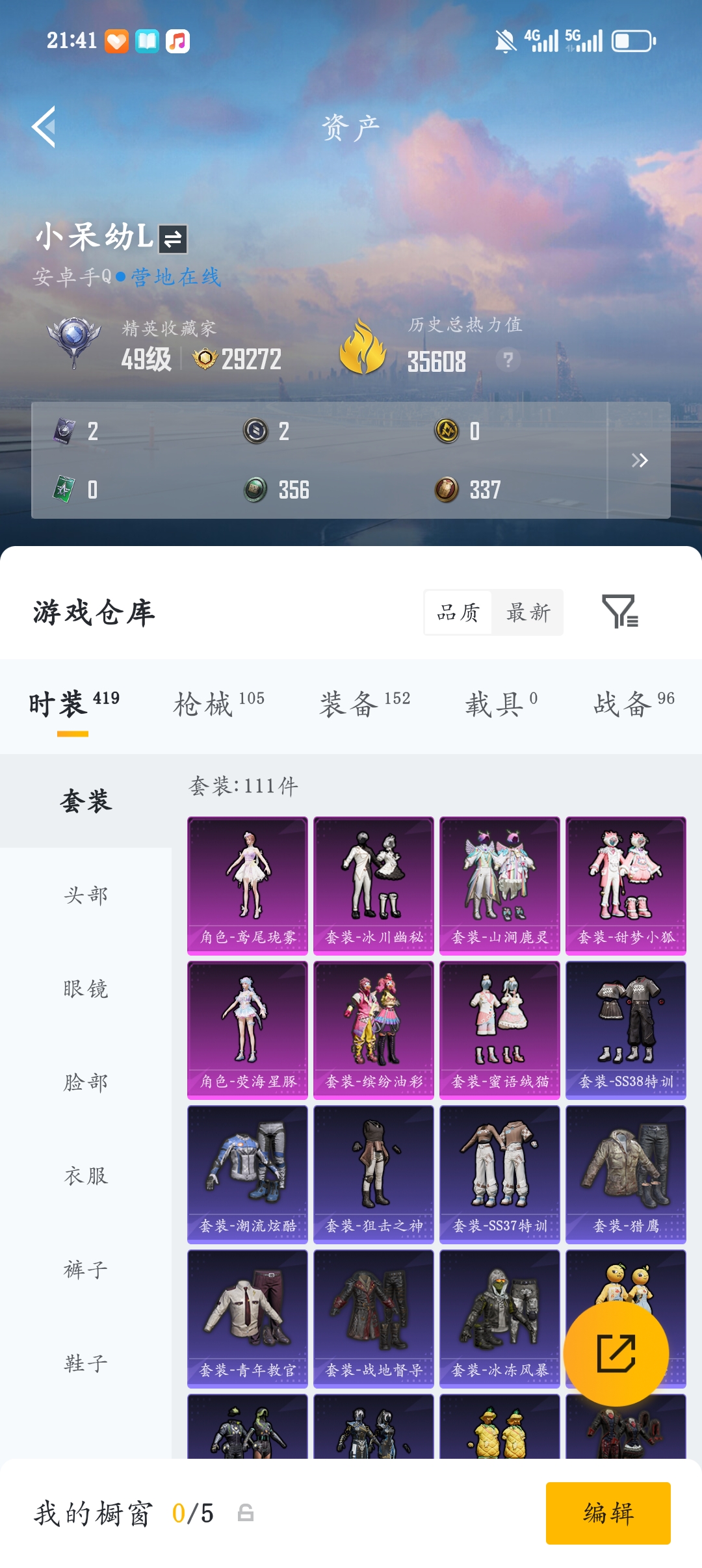 热力值:42036,2粉装,3粉枪,8粉色战备,130套装,139枪械,177装备,4滑翔尾翼