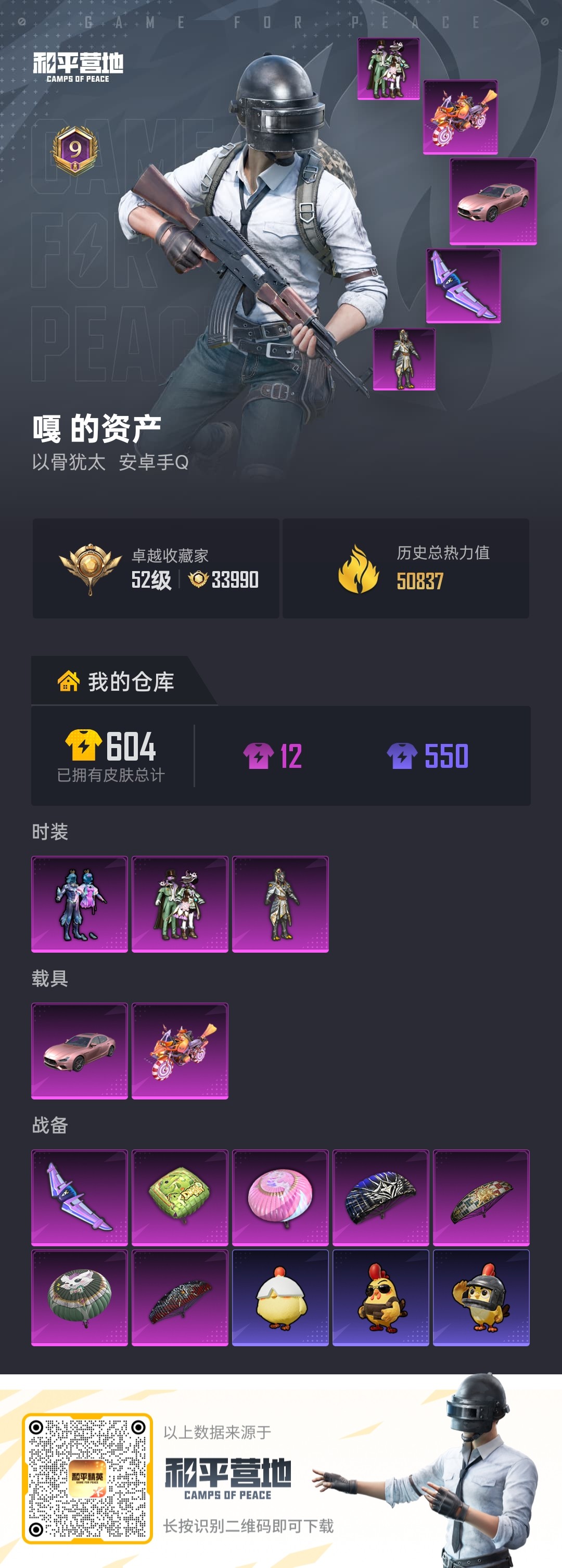 热力值:42036,2粉装,3粉枪,8粉色战备,130套装,139枪械,177装备,4滑翔尾翼