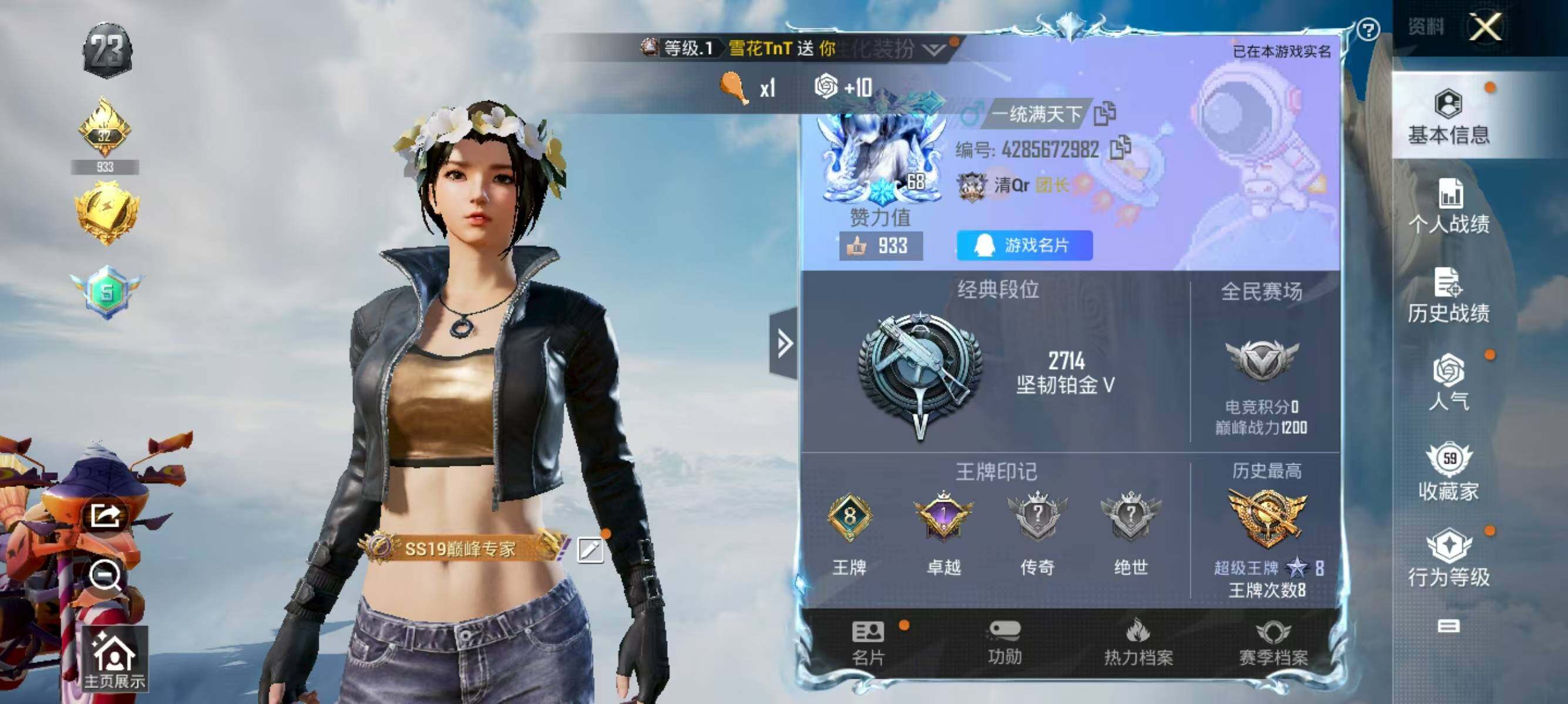 1载具1粉装1特效枪10热门121套装150枪皮 44669热力值 7印记 历史超级王牌11星
