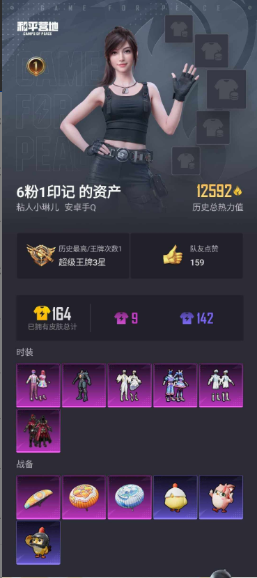 145套装/枪械3/装备262/战备158/王牌印记8/热力值61398/