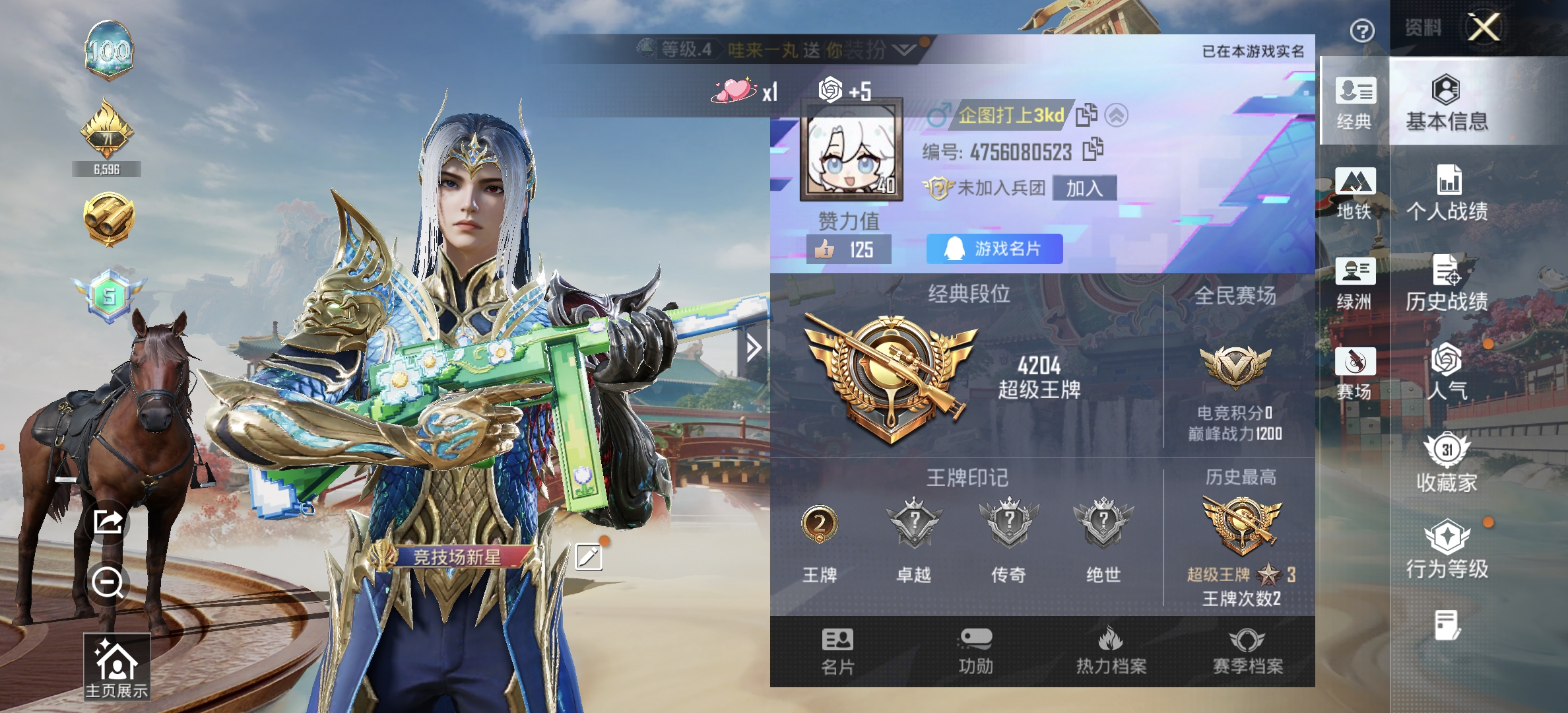 118套装/枪械5/装备200/战备128/王牌印记7/热力值39791/二级