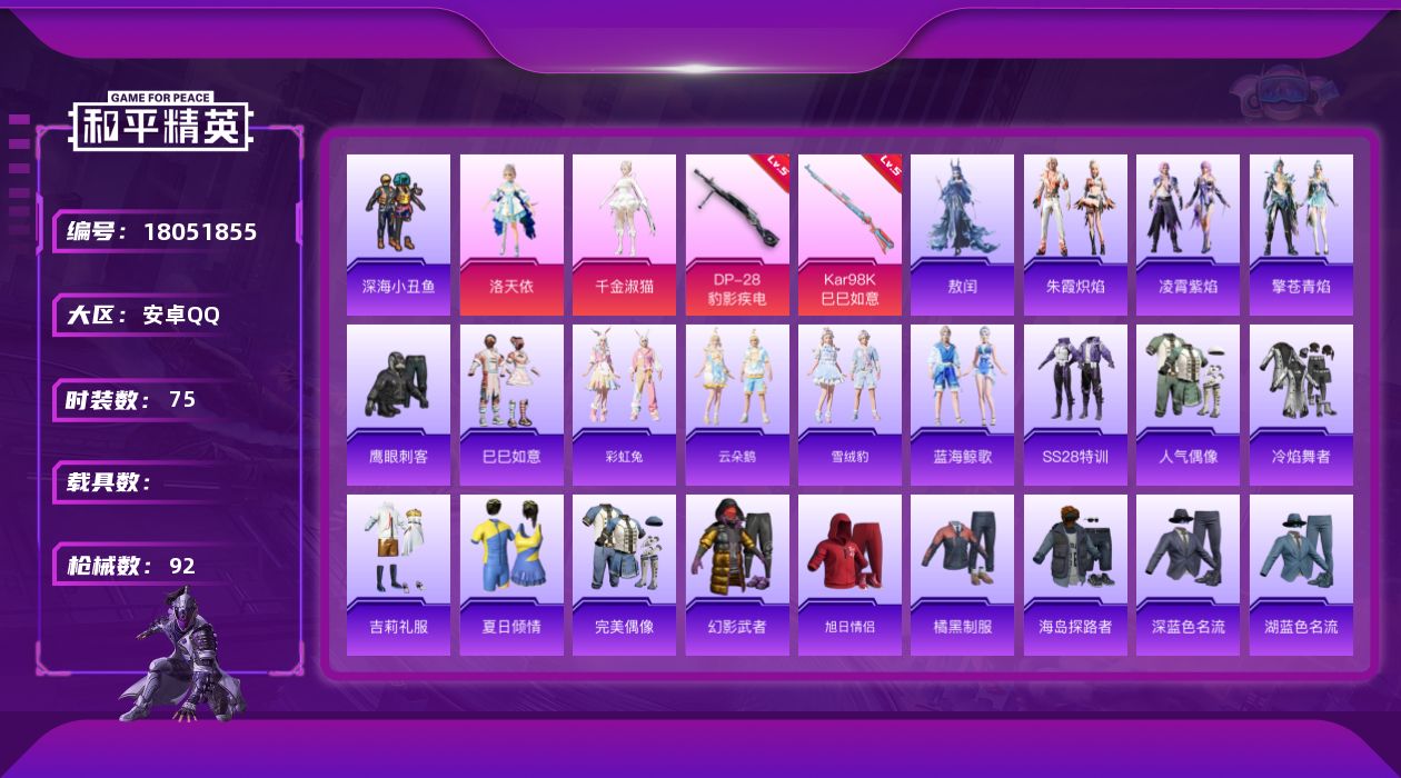 可二次实名【8特效枪 秒换绑不用等】 安卓Q区-17867热力值-29套装-77