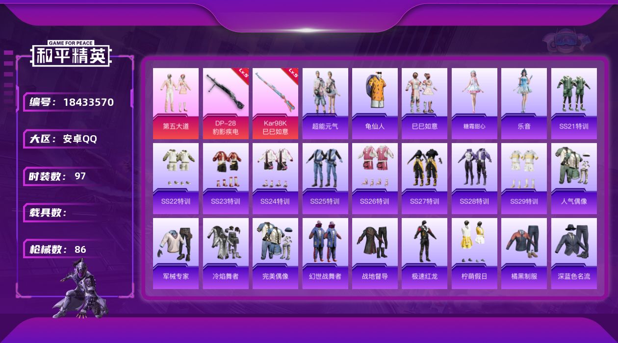 5王牌印记-2粉装-6特效枪-39412热力值-93套装-143枪皮