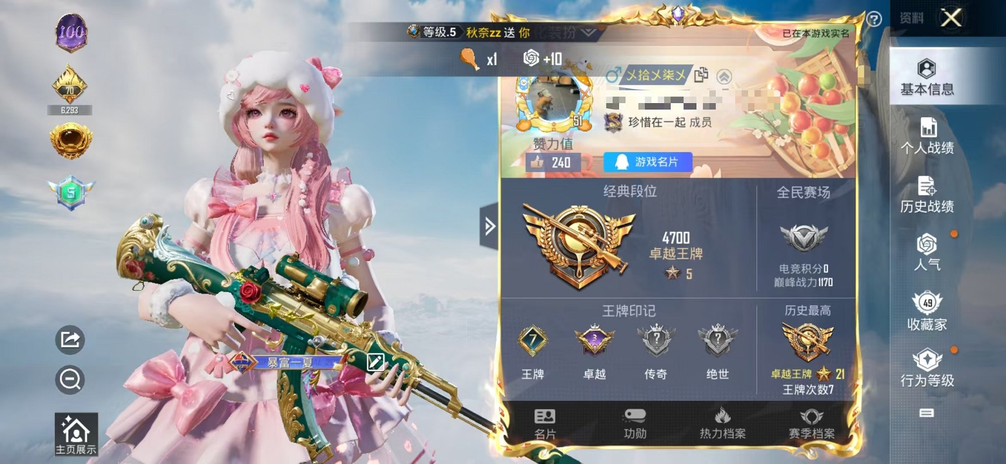 0粉装-2特效枪-0载具-0粉色飞行器-24392热力值-3王牌印记-63套装-82枪皮