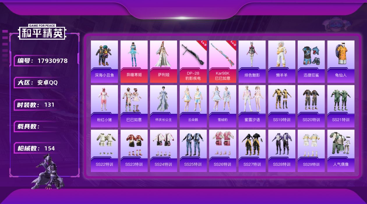安卓手Q-1王牌印记-3粉装-6特效枪-46610热力值-117