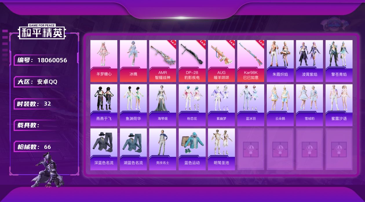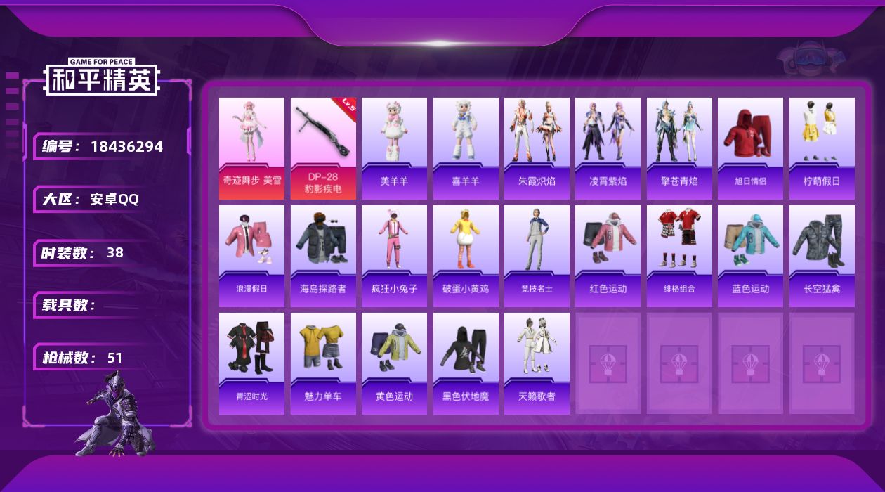 安卓 手Q-3粉装-6特效枪-0载具-1粉色飞行器-46500热力值-14王牌