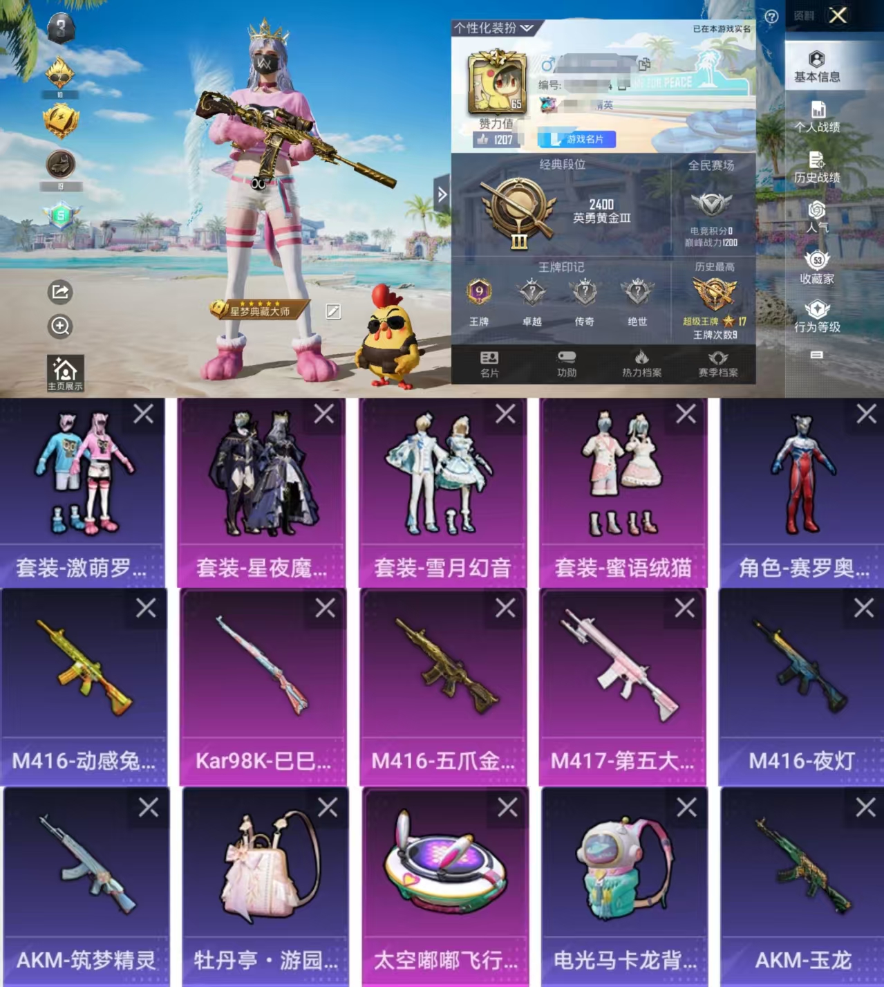 2王牌印记-2粉装-2特效枪-92枪皮-87套装-1载具