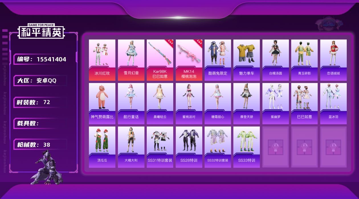 2王牌印记-2粉装-2特效枪-92枪皮-87套装-1载具
