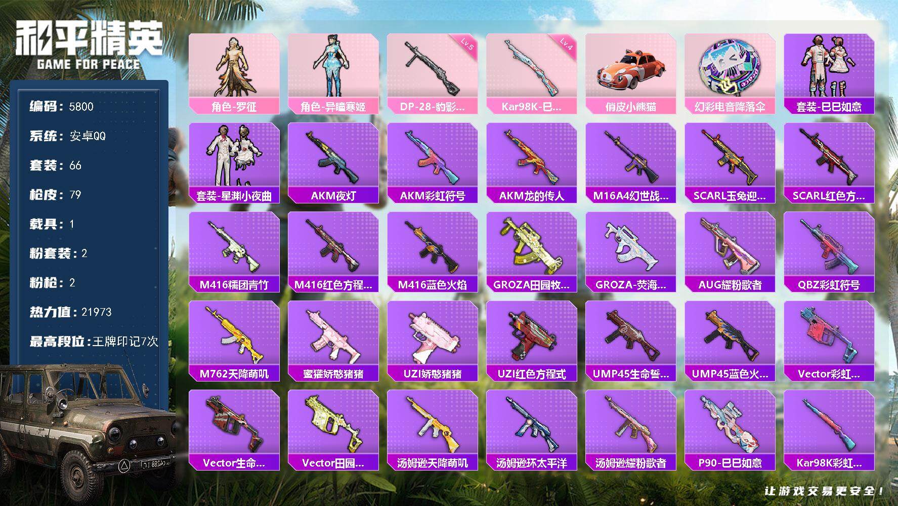 安卓 手Q-2粉装-2特效枪-1载具-0粉色飞行器-21973热力值-7王牌印