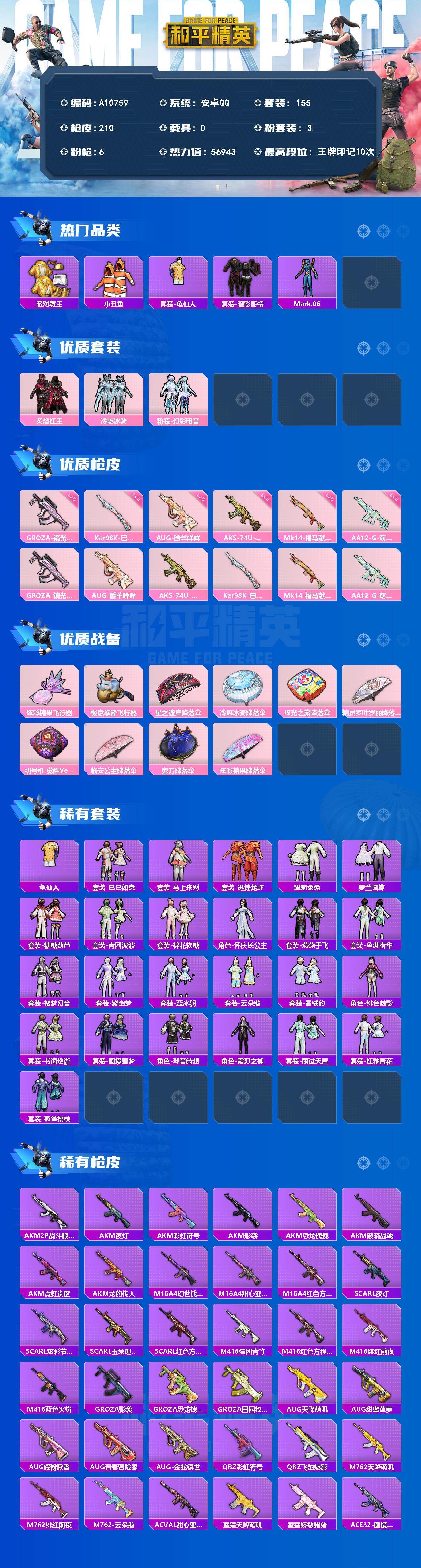 【9特效枪1粉装 秒换绑不用等】 安卓Q区-43022热力值-119套装-161