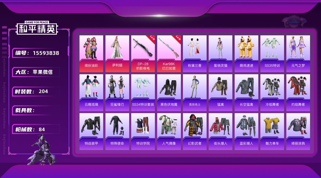 hs47209 苹果手Q-14王牌印记-2特效枪-1载具-36751热力值-101套装-118枪皮