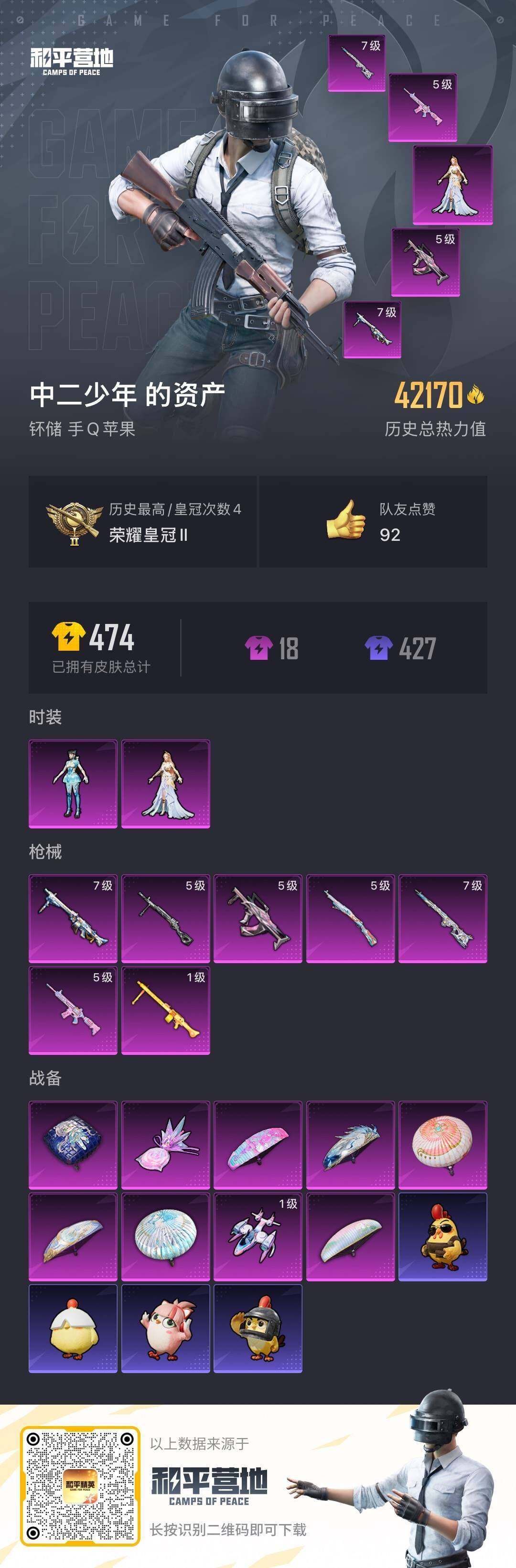 苹果 手Q-3粉装-6特效枪-0载具-0粉色飞行器-29137热力值-5王牌印