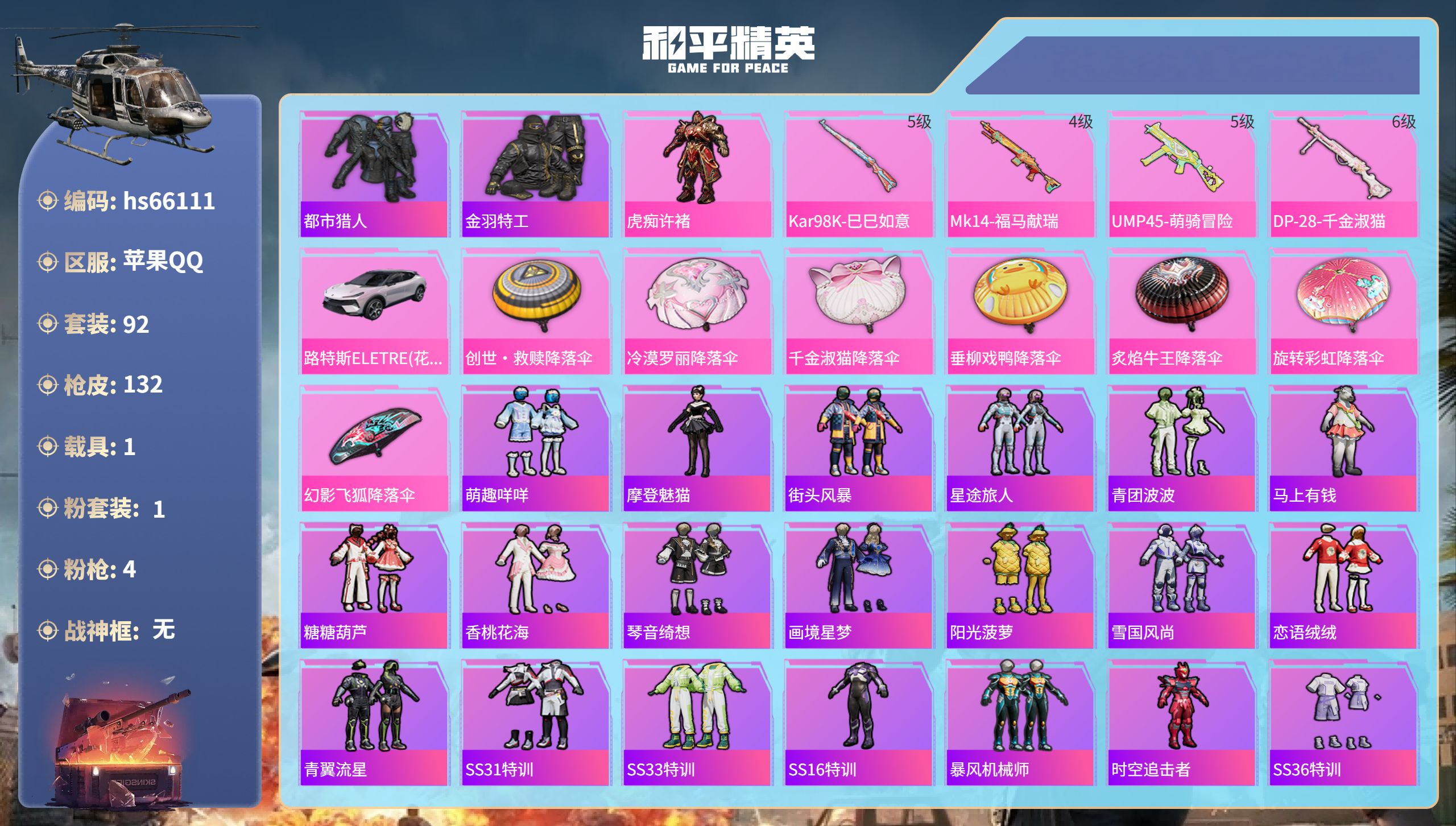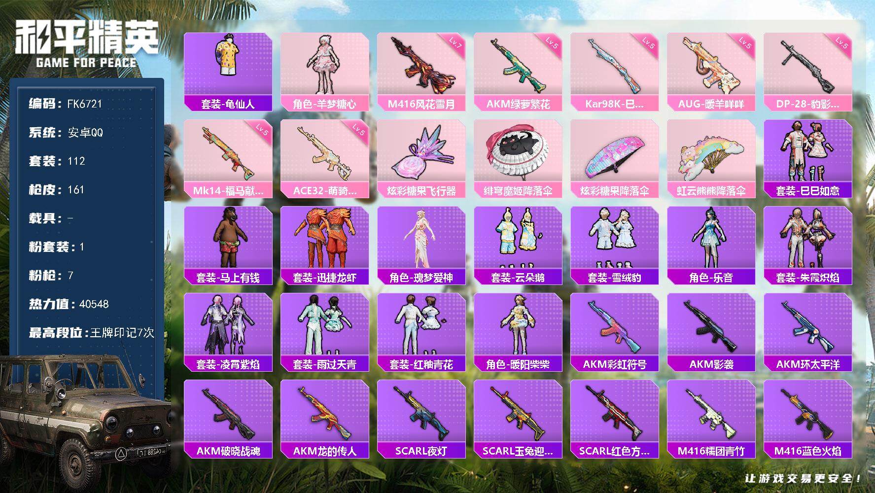 【FK6721】112套装/枪械7/装备142/战备96/王牌印记7/热力值4