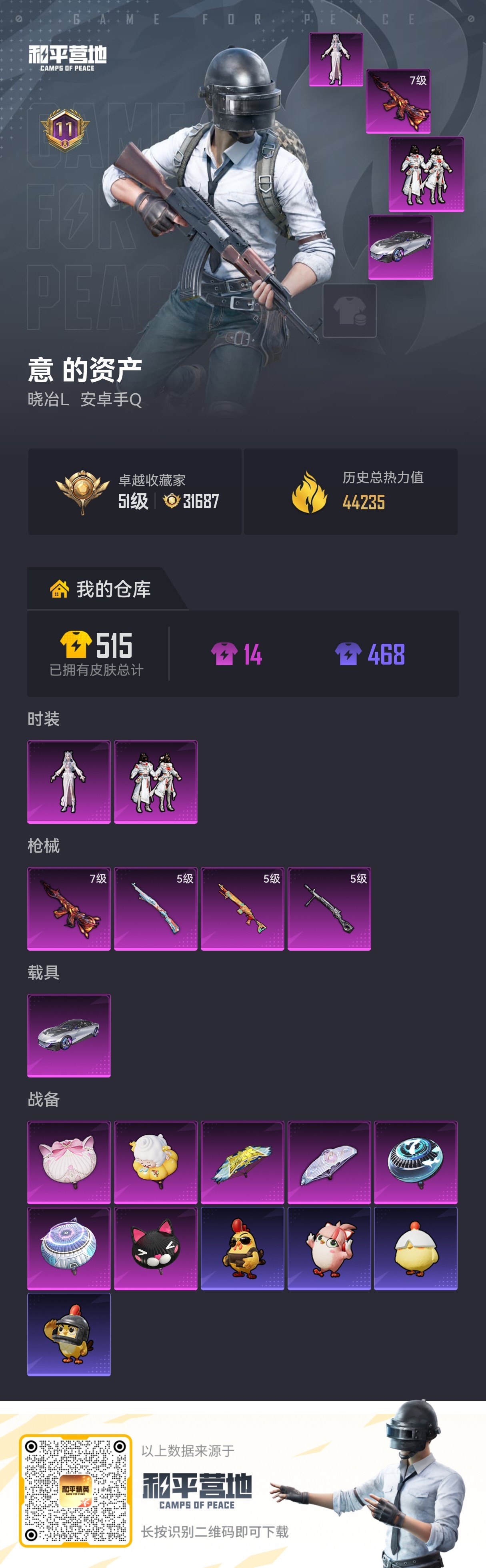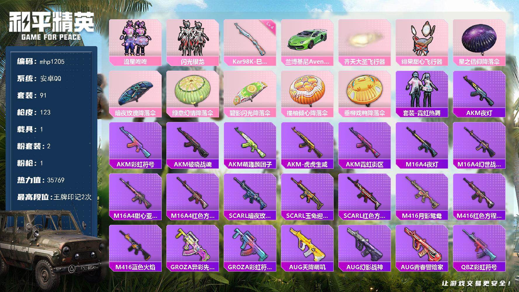 安卓QQ-可二次-51139热力值-3粉装-6升级枪一把七级-1载具-梦幻火箭 低价出