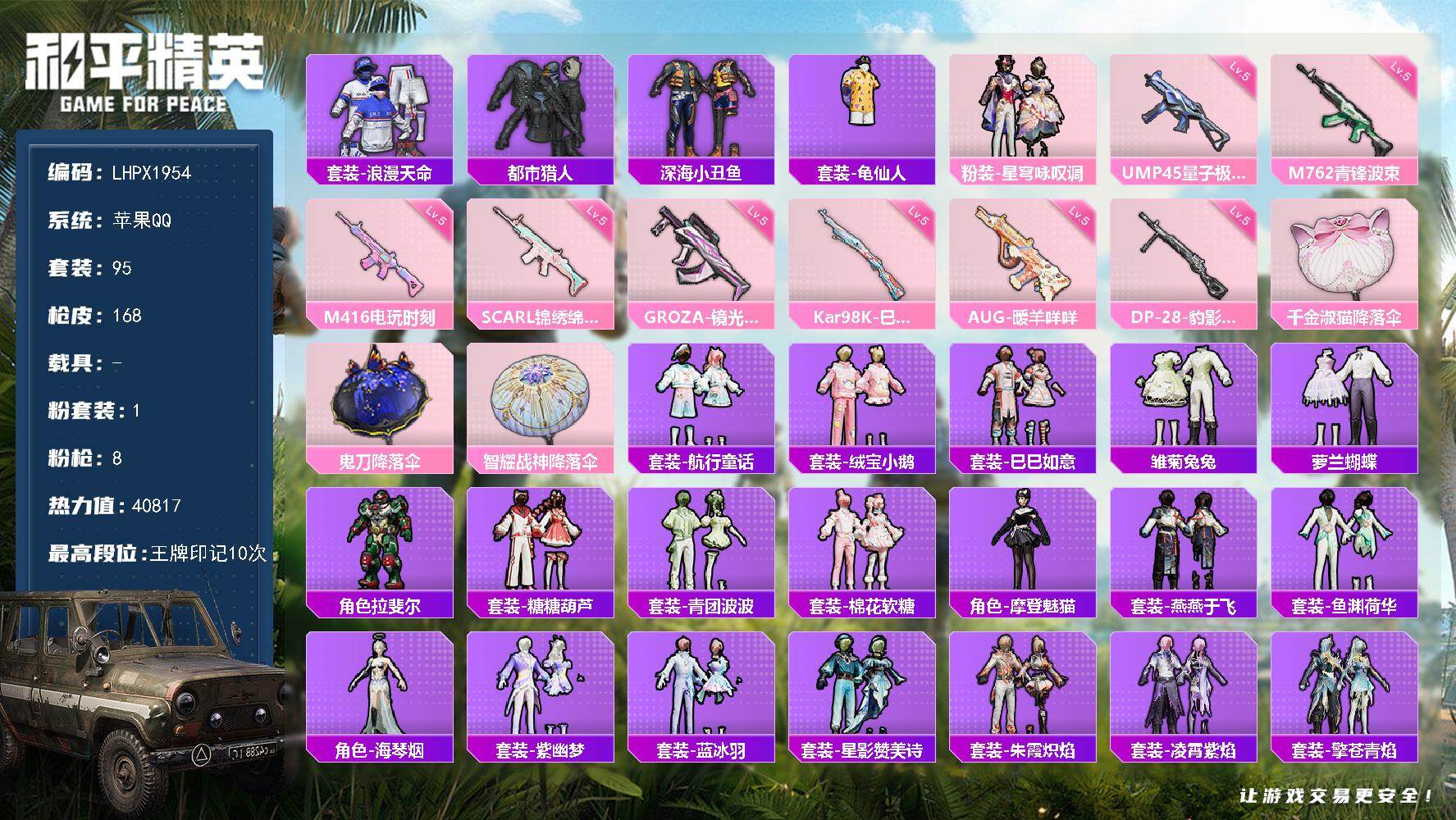 苹果 手Q-3粉装-6特效枪-0载具-0粉色飞行器-29137热力值-5王牌印