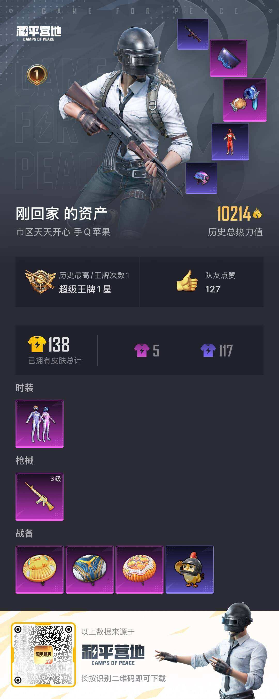 苹果 手Q-3粉装-1特效枪-1载具-0粉色飞行器-29801热力值-3王牌印