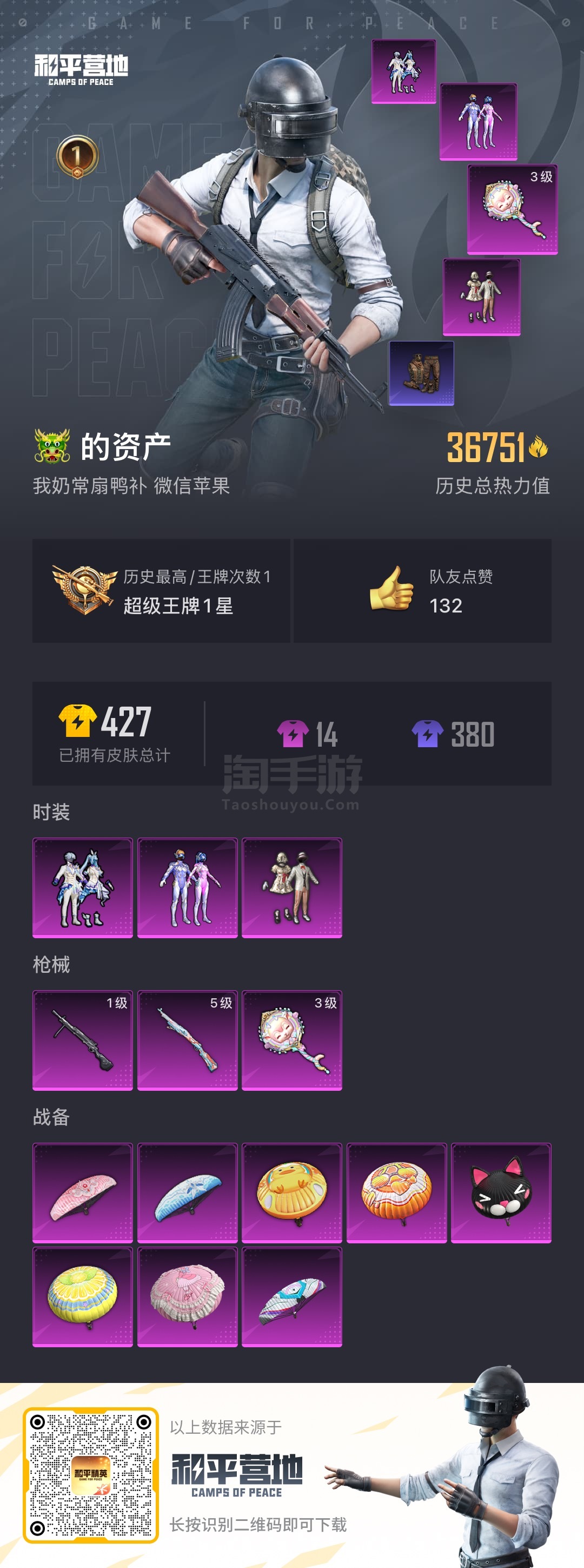 174套装/枪械5/装备236/战备164/王牌印记12/热力值60727/五