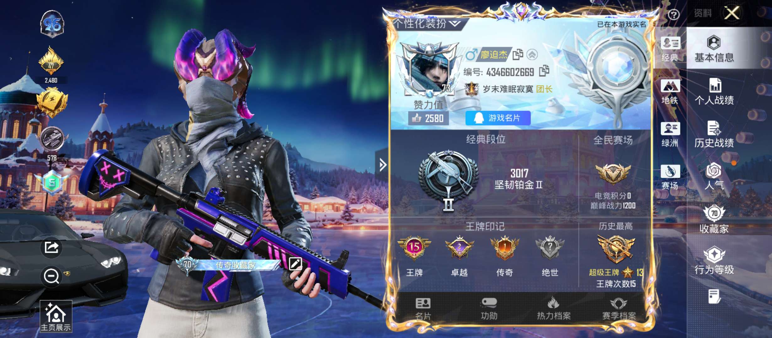 和平王者一体号和平小身法有一套车皮70级 传奇收藏家特权卡还有84天精英手册九十几级王者自己看