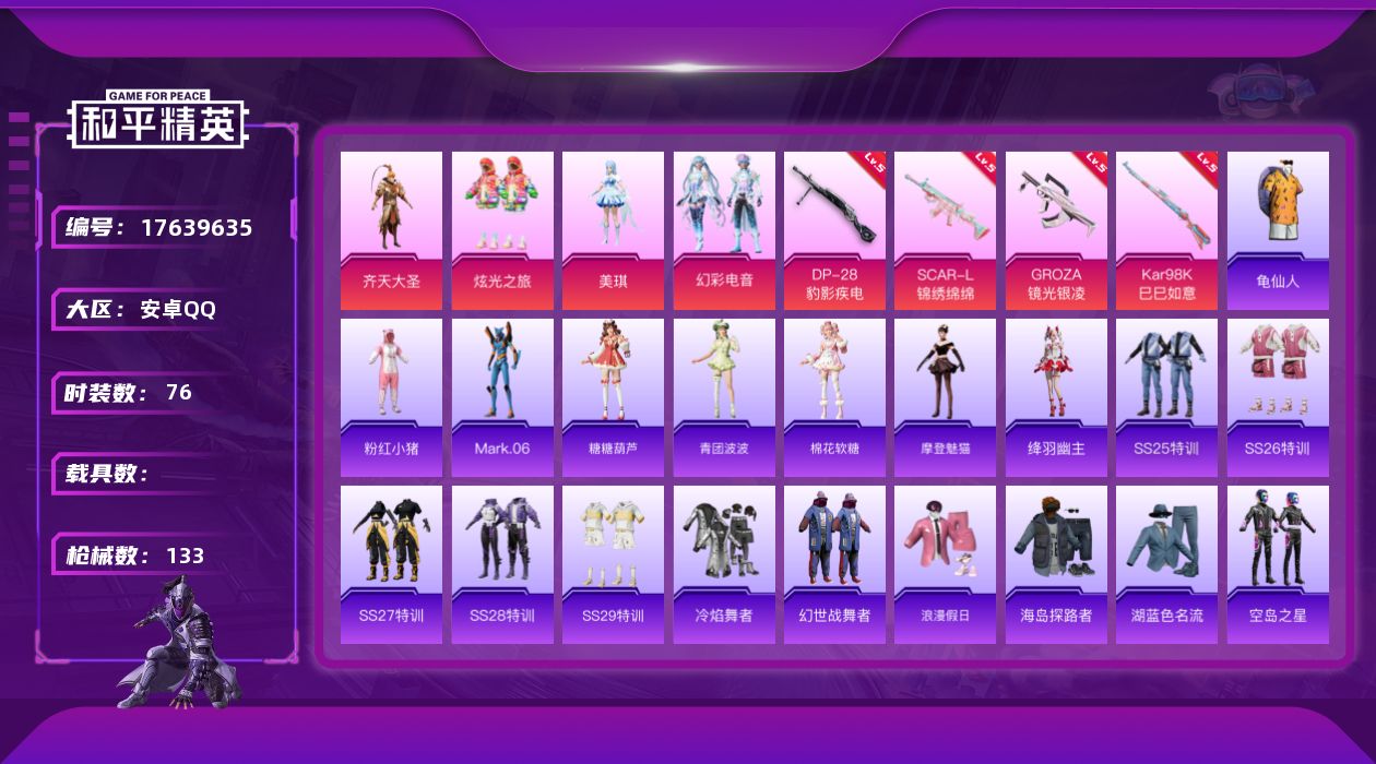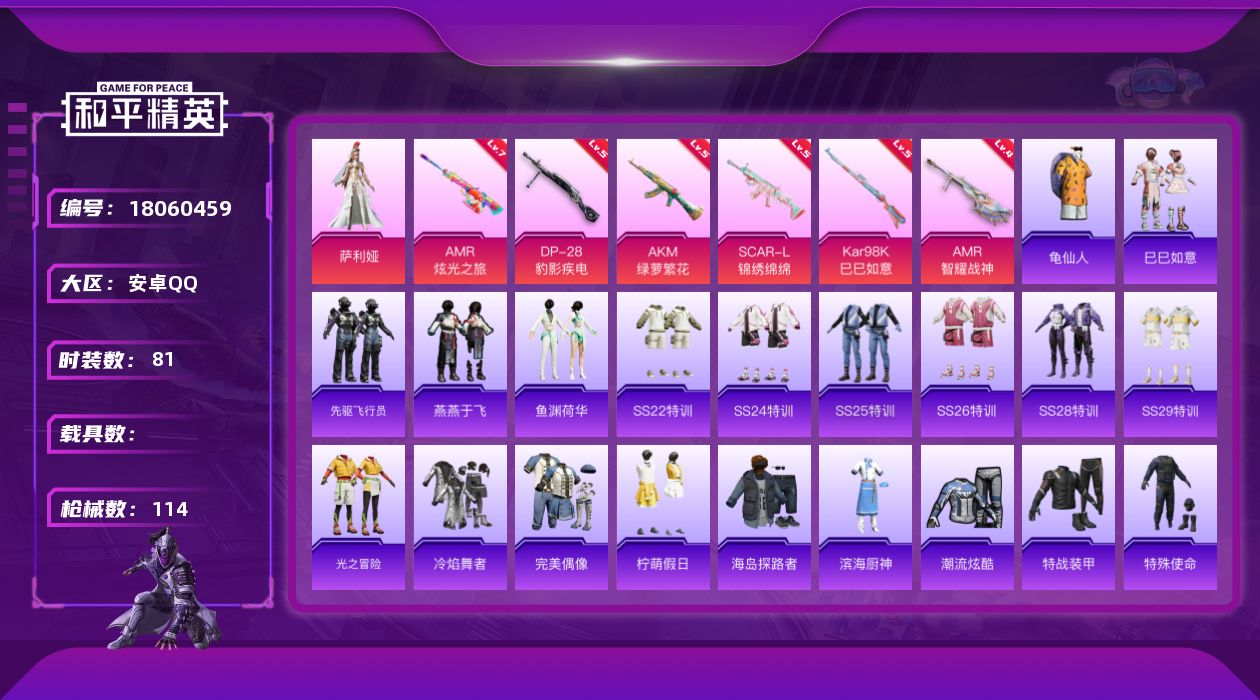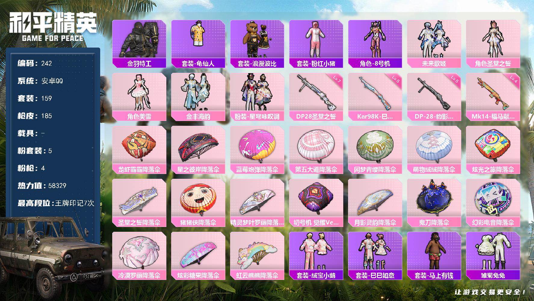 安卓 手Q-2粉装-4特效枪-0载具-0粉色飞行器-25948热力值-6王牌印