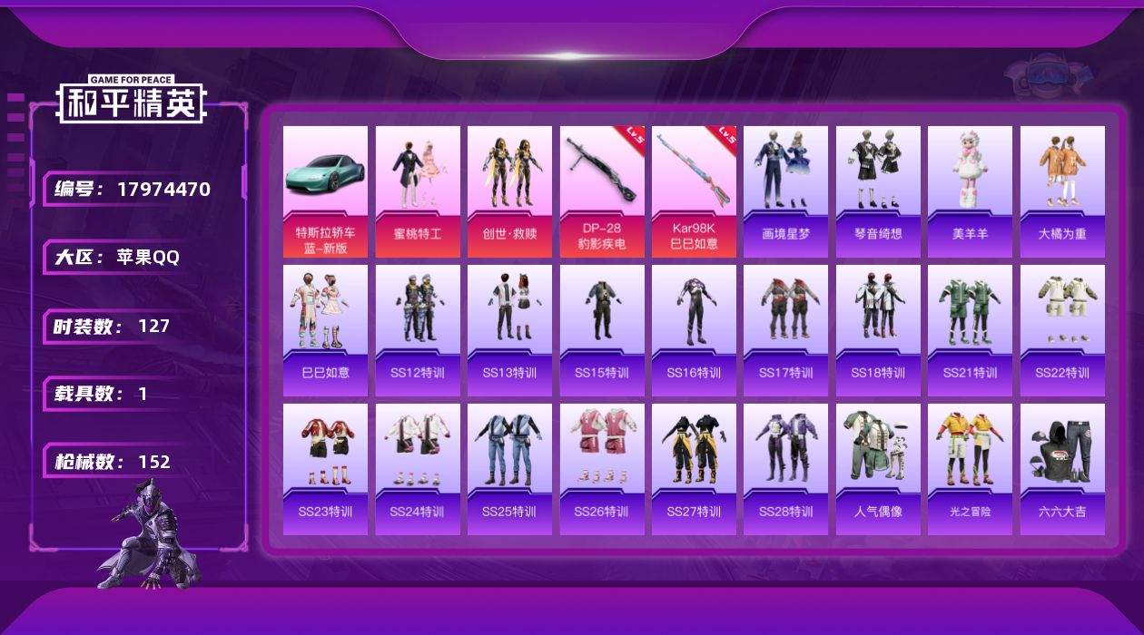 3粉装-7特效枪-2粉色飞行器-41999热力值-4王牌印记-86套装-148枪皮
