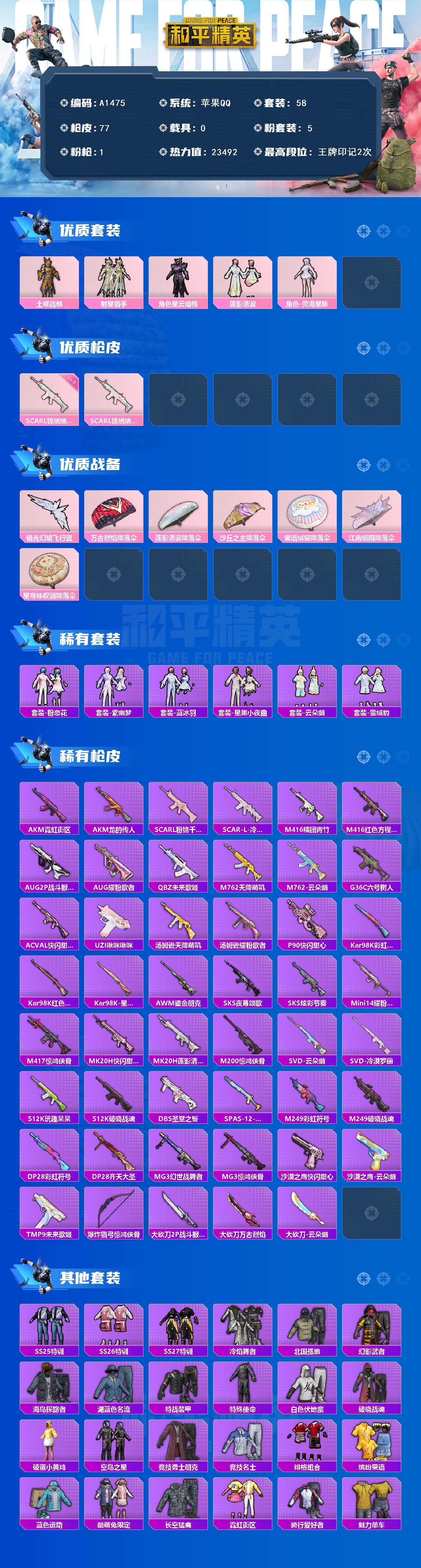 5粉装-1特效枪-0载具-1粉色飞行器-23492热力值-2王牌印记-58套装-77枪皮