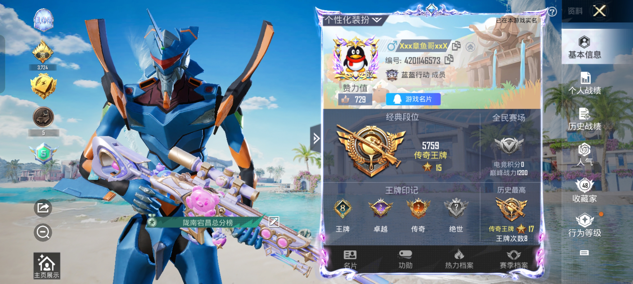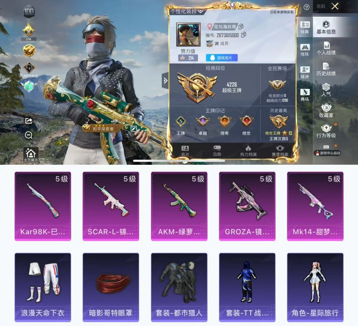 122套装/枪械4/装备162/战备118/王牌印记1/热力值45769/五级