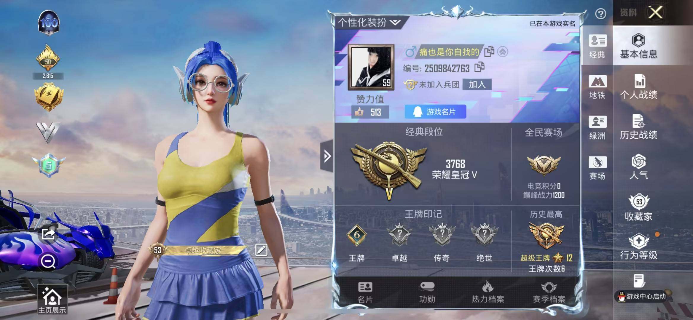 50套装/枪械1/装备53/载具2/战备48/王牌印记2/热力值17759
