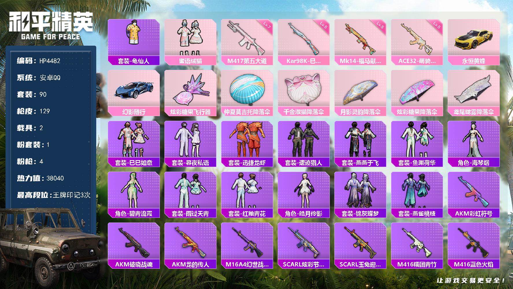 安卓 手Q-2粉装-4特效枪-0载具-0粉色飞行器-35992热力值-7王牌印