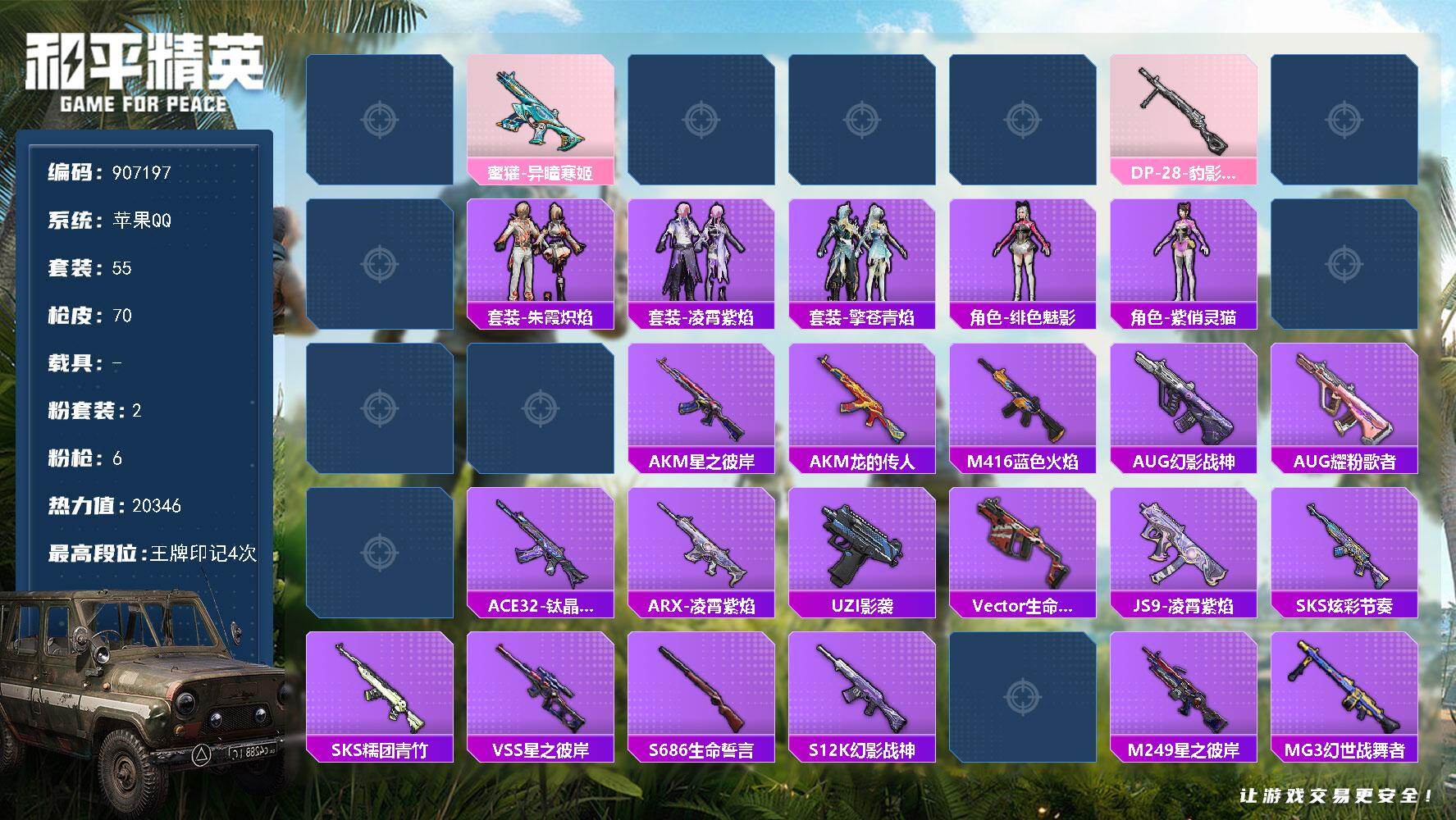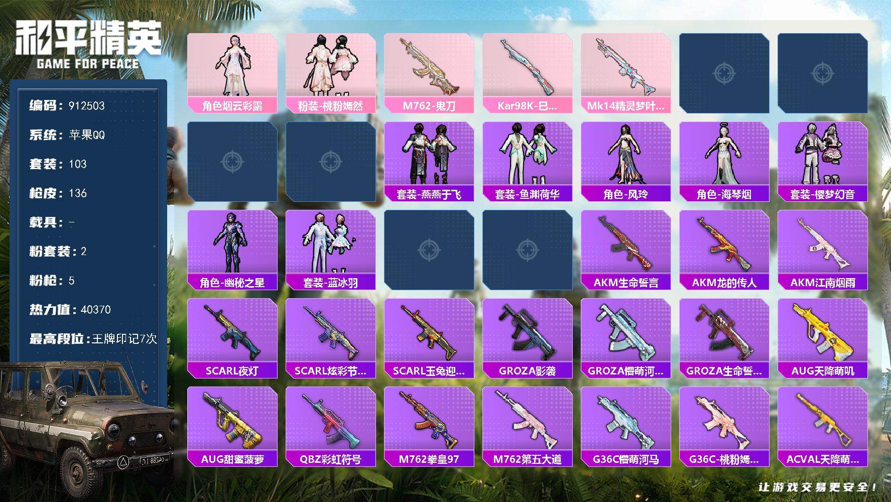 hs58682 苹果手Q-10王牌印记-2粉装-2特效枪-1载具-55437热力值-136套装-19