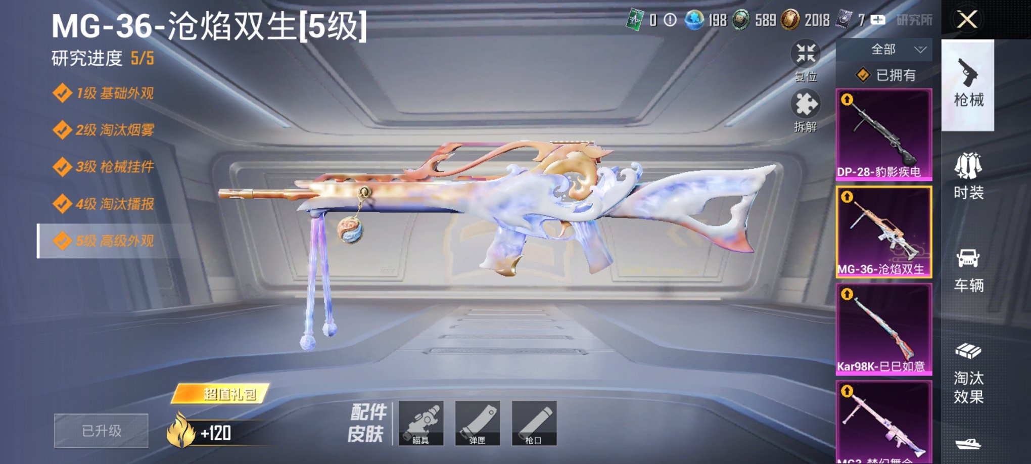 满级MG3、5粉装4特效枪 -77550热力值