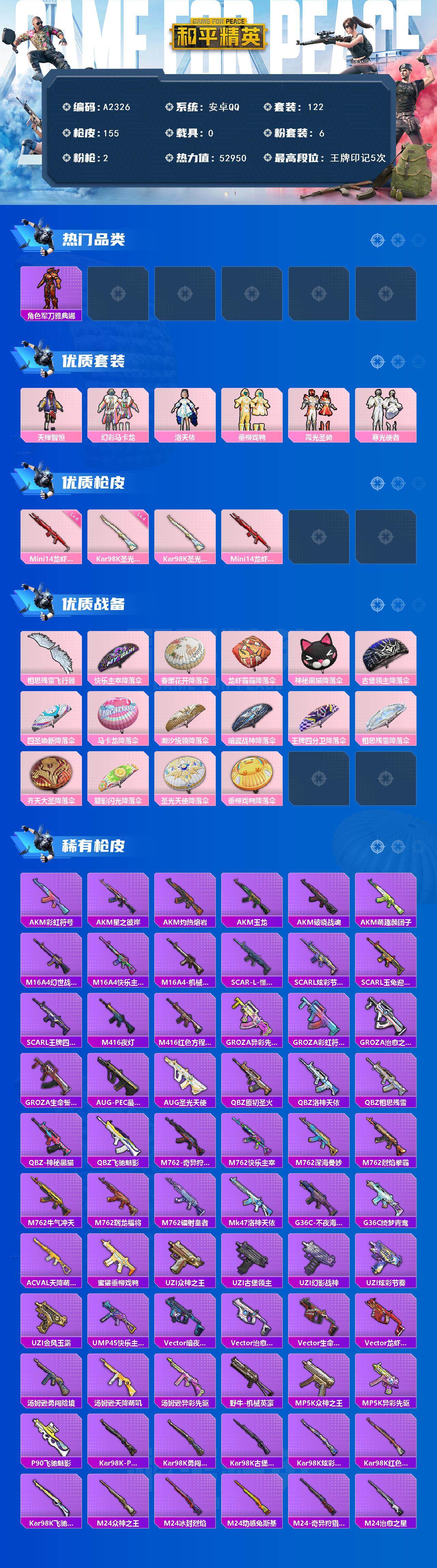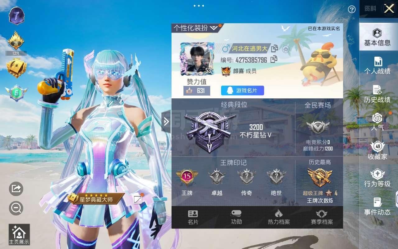 151套装/枪械3/装备200/战备115/王牌印记4/热力值53724/七级