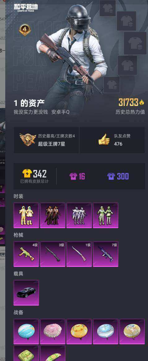安卓 手Q-2粉装-3特效枪-1载具-0粉色飞行器-43858热力值-3王牌印