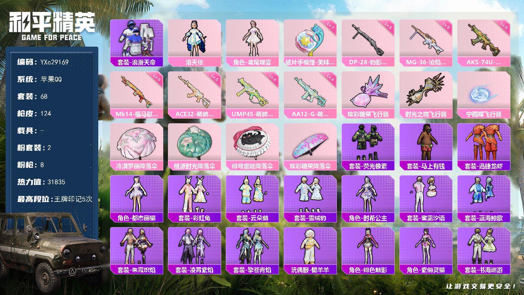 0载具-2粉色飞行器-27884热力值-2王牌印记-69套装-98枪皮