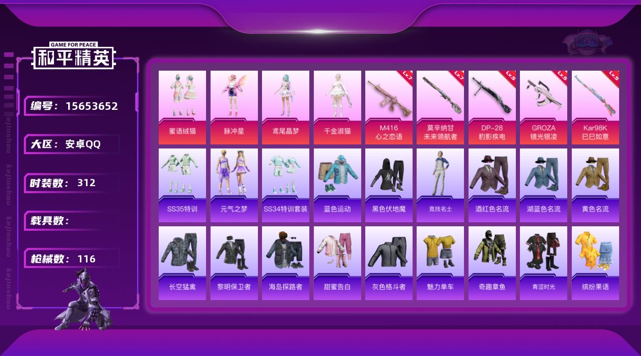 手Q-2粉装-6特效枪-0载具-0粉色飞行器-42157热力值-6王牌印记
