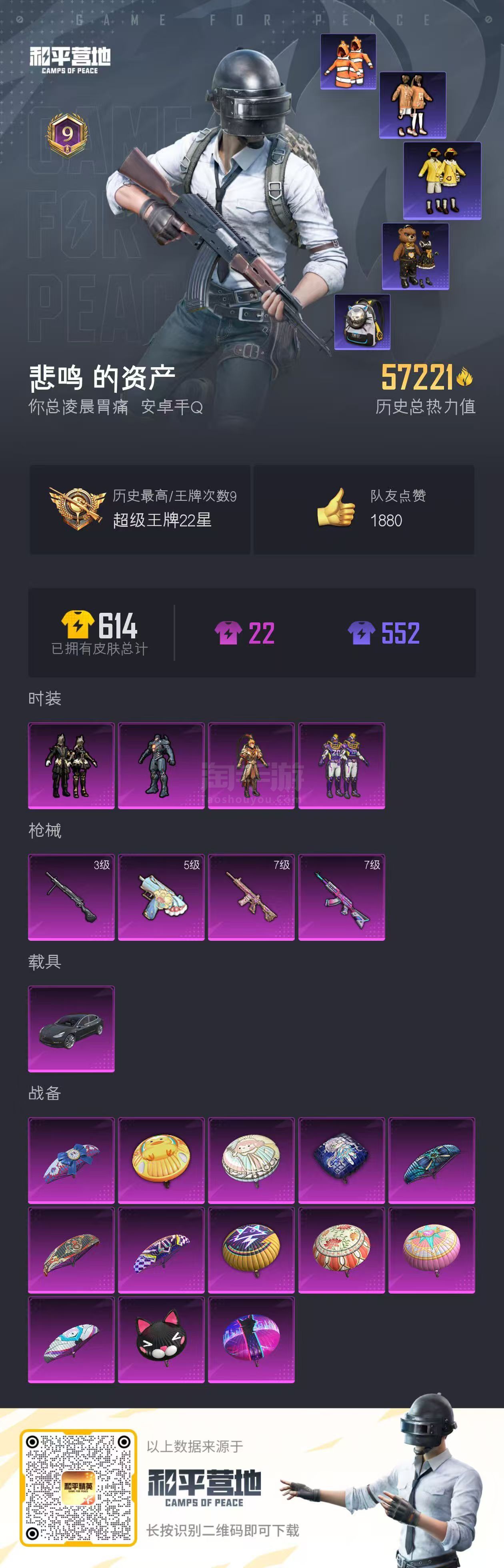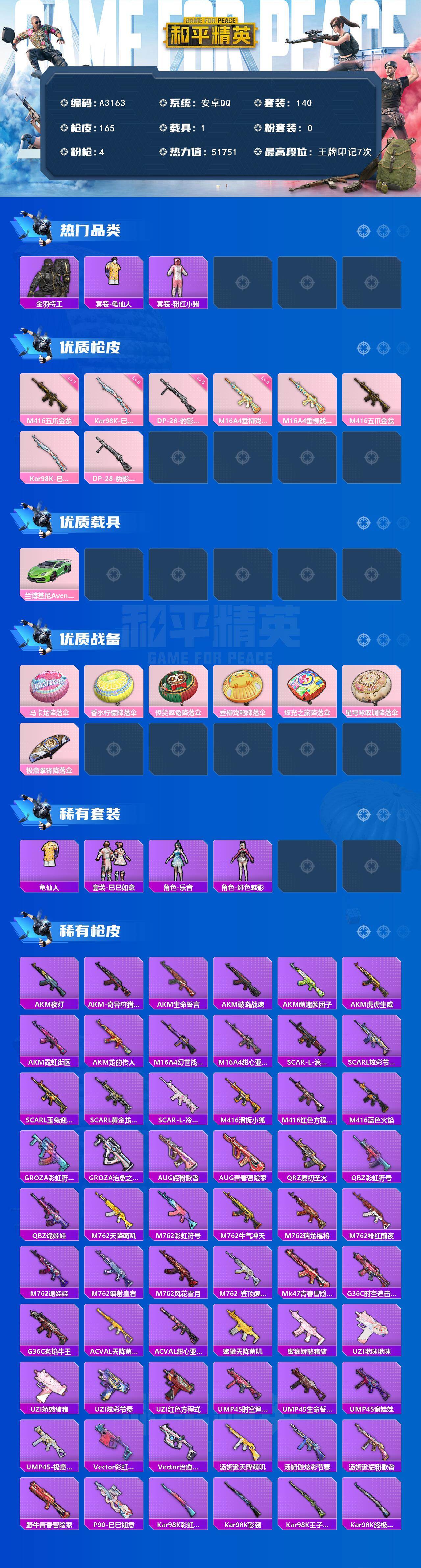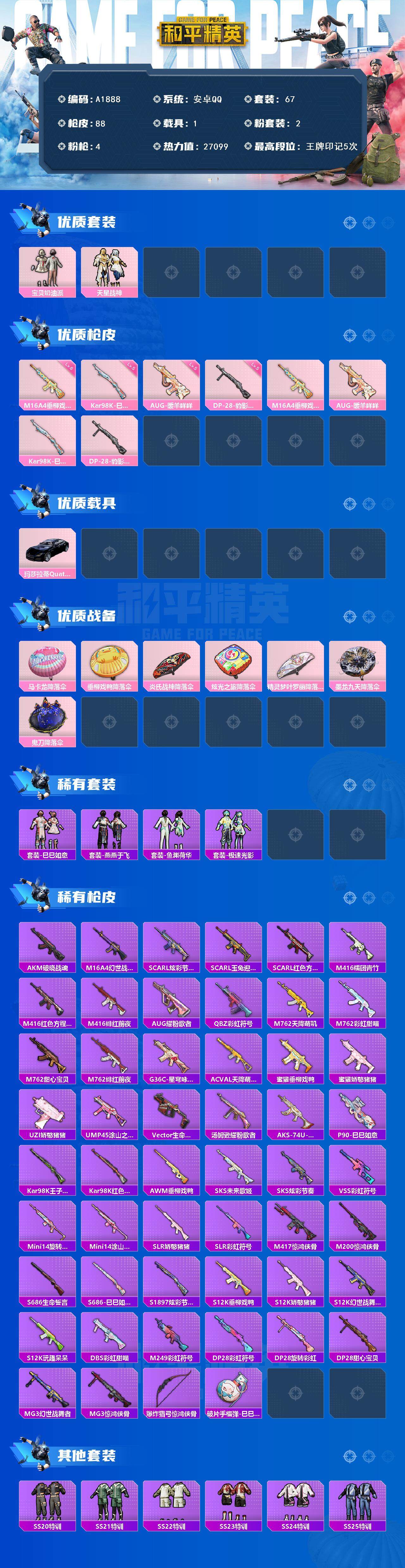 安卓Q-1稀有1载具2粉装4特效枪10热门85套装111枪皮 1印记 历史超级王牌