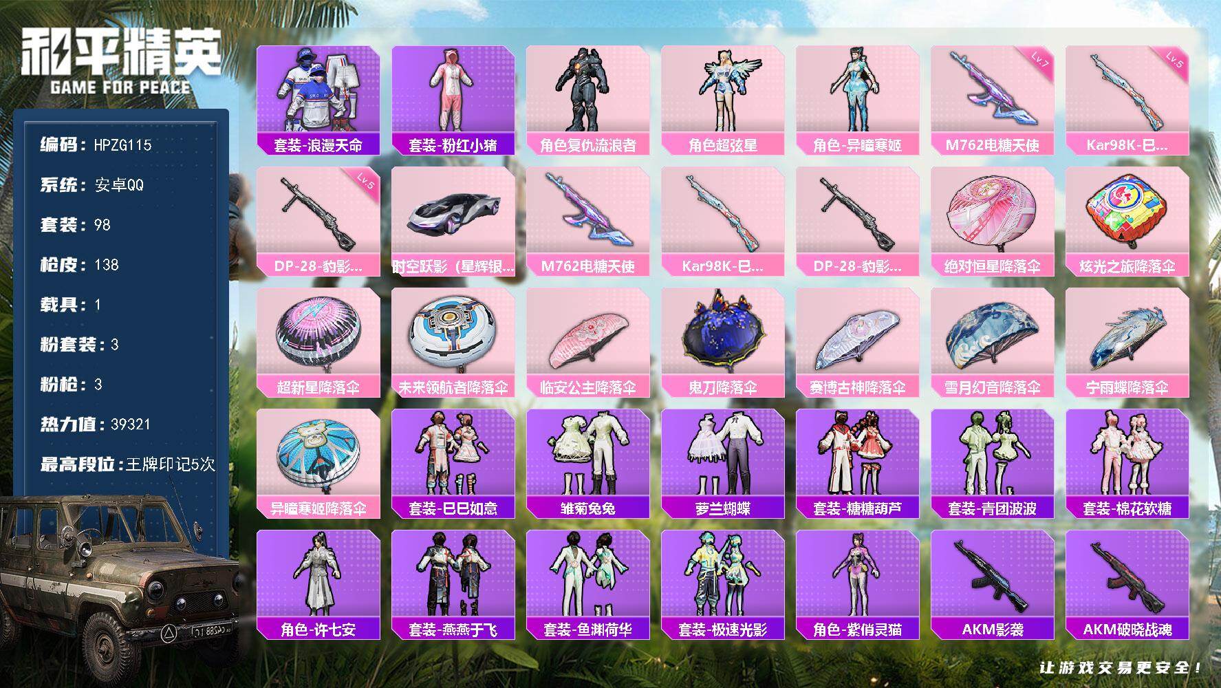 98套装/枪械3/装备180/载具1/战备109/王牌印记5/热力值39321/七级M762