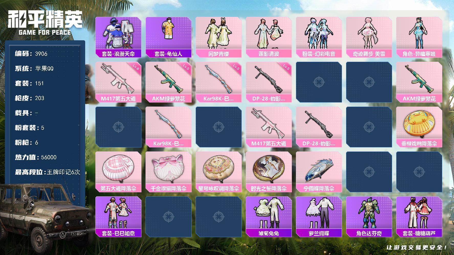 安卓 手Q-3粉装-7特效枪-0载具-3粉色飞行器-52947热力值-2王牌印