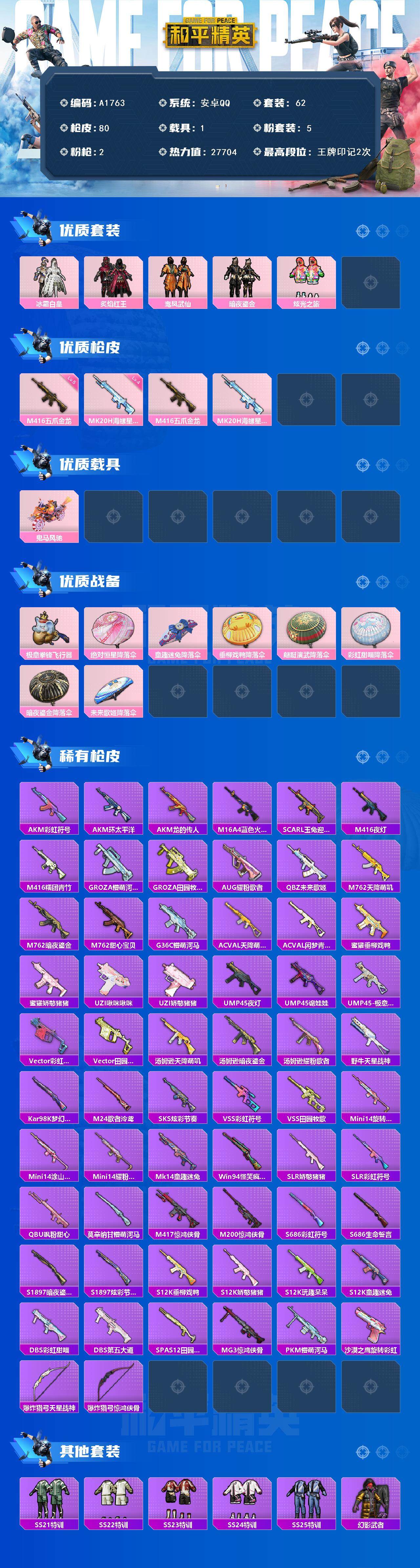 安卓QQ 包人脸 6印记 1粉装 4满级特效枪 2载具 两个螳螂 浪漫波比 漂亮女号