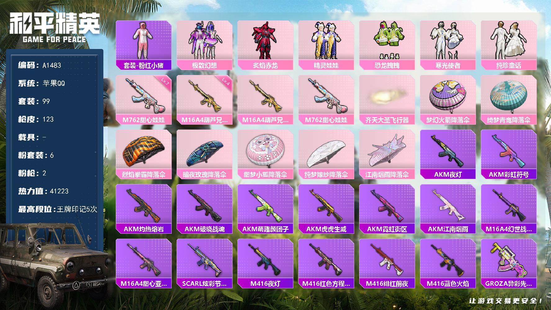 苹果 手Q-4粉装-2特效枪-0载具-25307热力值-0印记-56套装-83