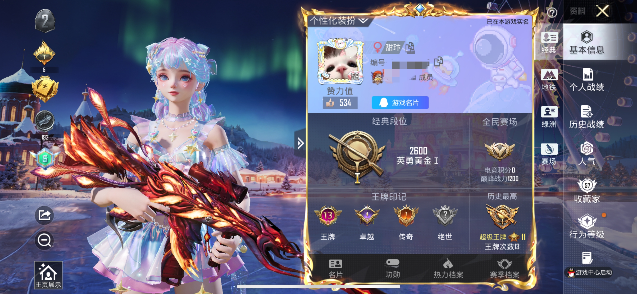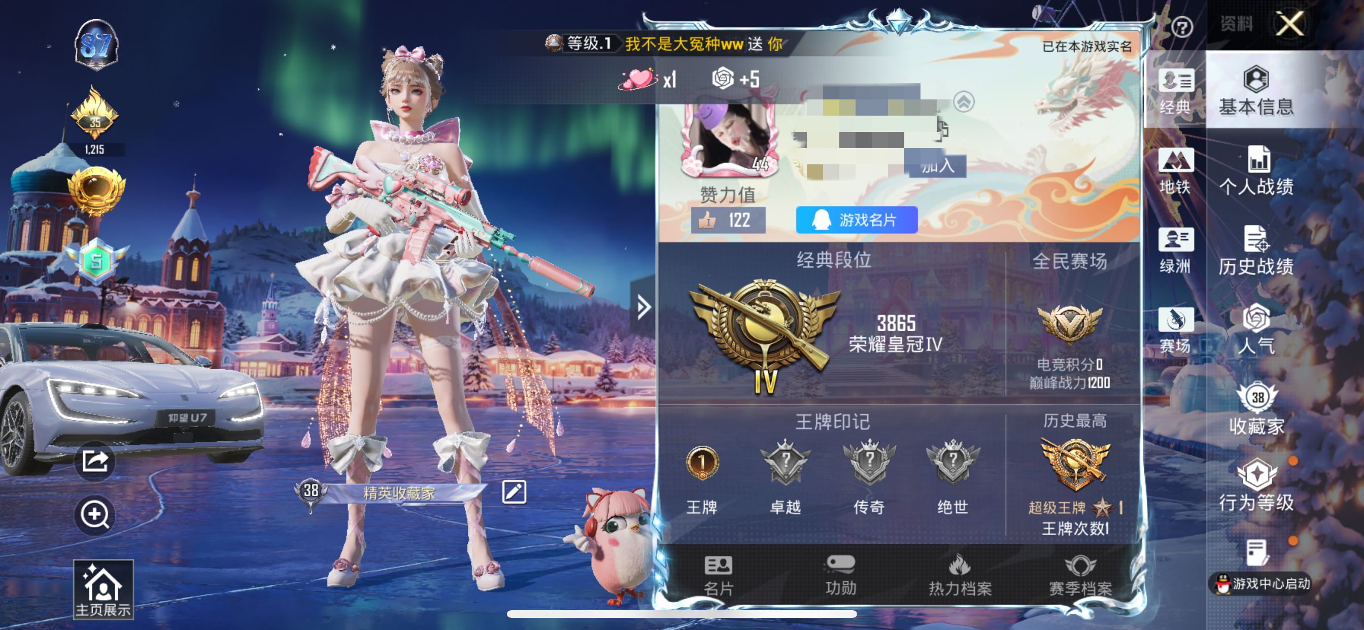 苹果手Q-7王牌印记-3粉装-5特效枪-1载具-36065热力值-84套装-114枪皮-1卓越印记