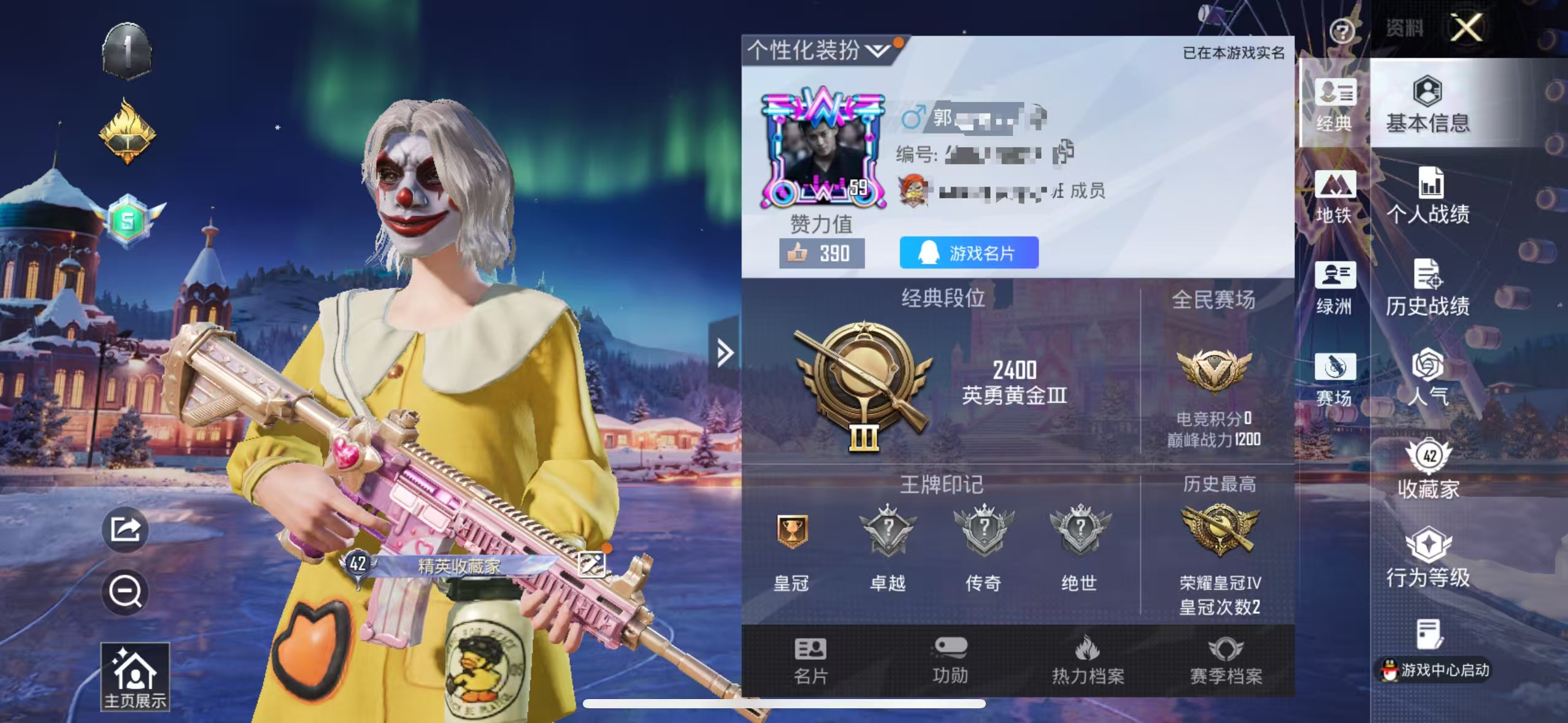 3稀有1载具2粉装2特效枪12热门152套装195枪皮 53993热力值 1印记 历史超级王牌