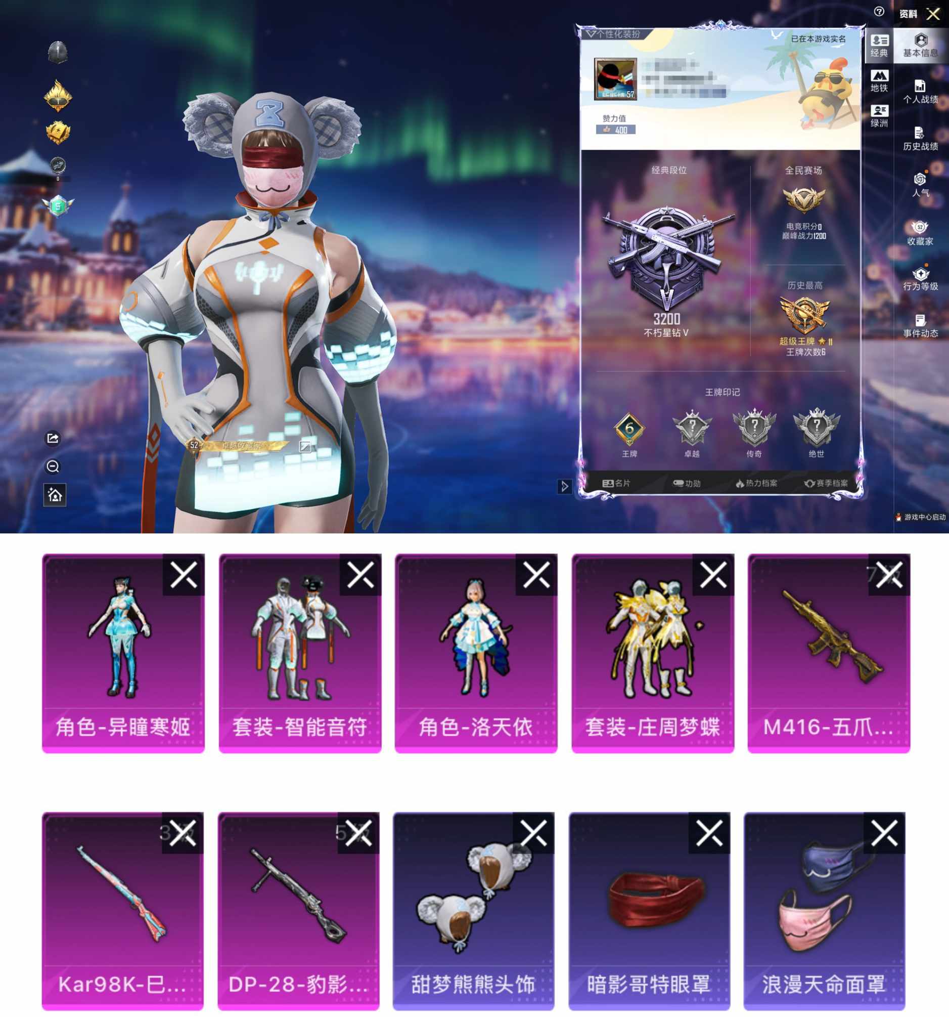 苹果手Q-8王牌印记-5粉装-4特效枪-1载具-43559热力值-98套装-128枪皮-1卓越印记【